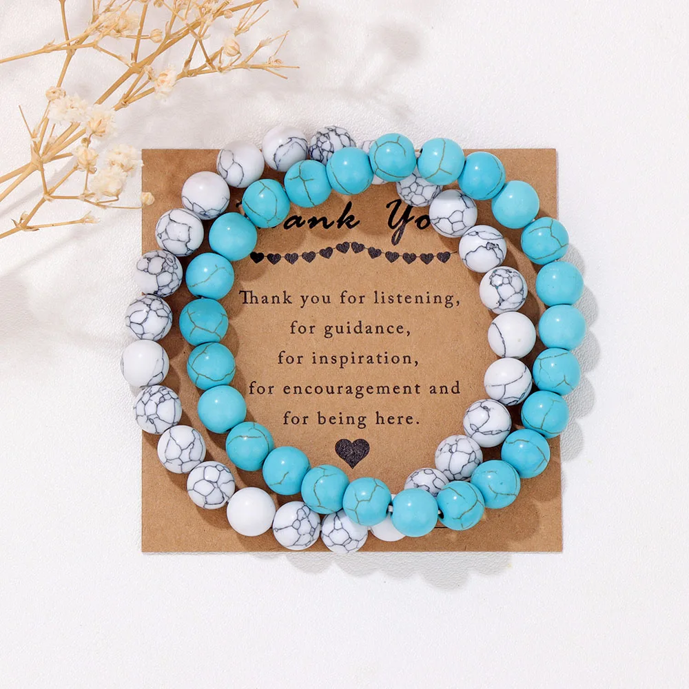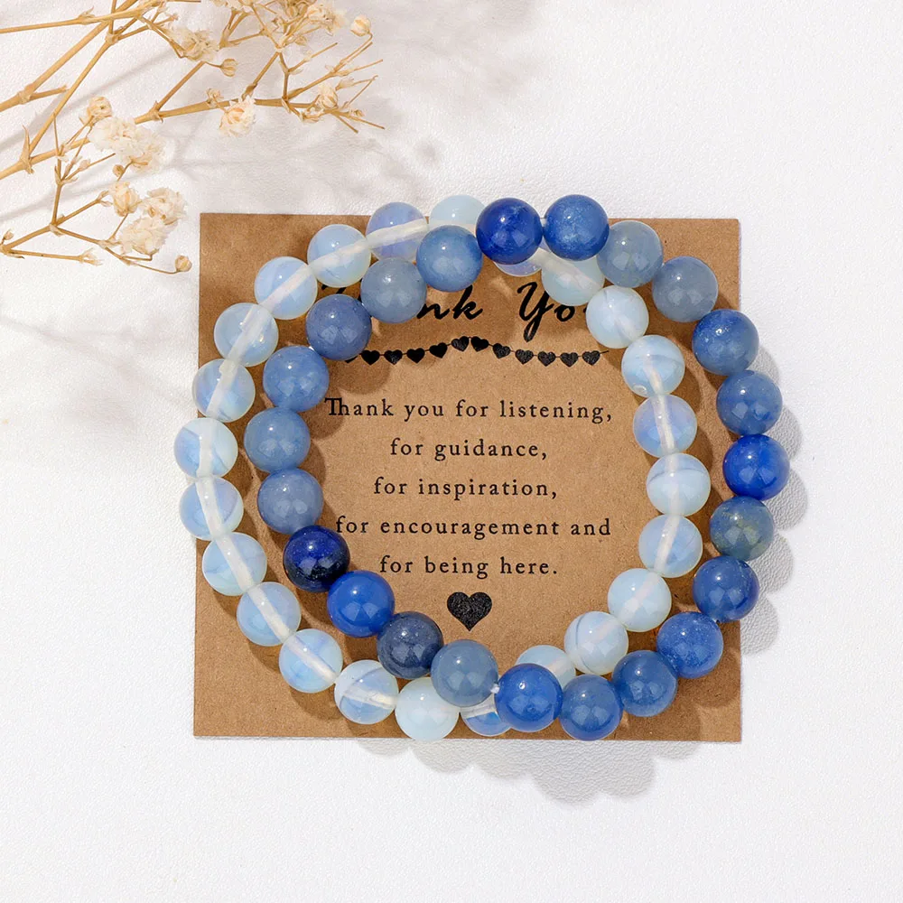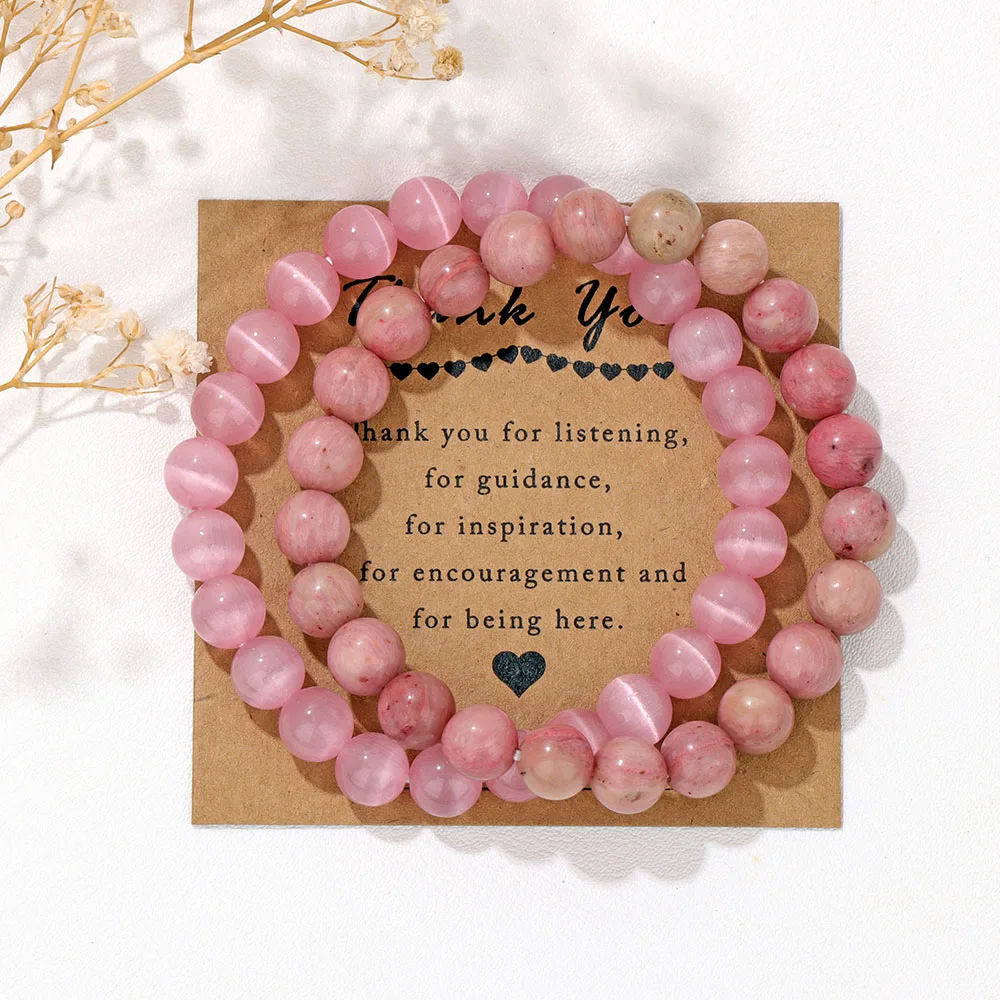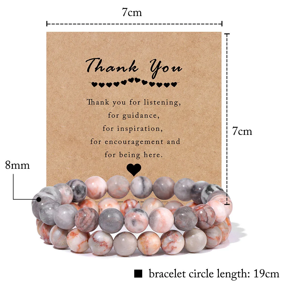 2Pcs/Set Natural 8mm Round Bead Bracelets Cat Eye Amethysts Bracelet Couple Stretch Bracelets With Cards Thank you Jewelry Gitfs