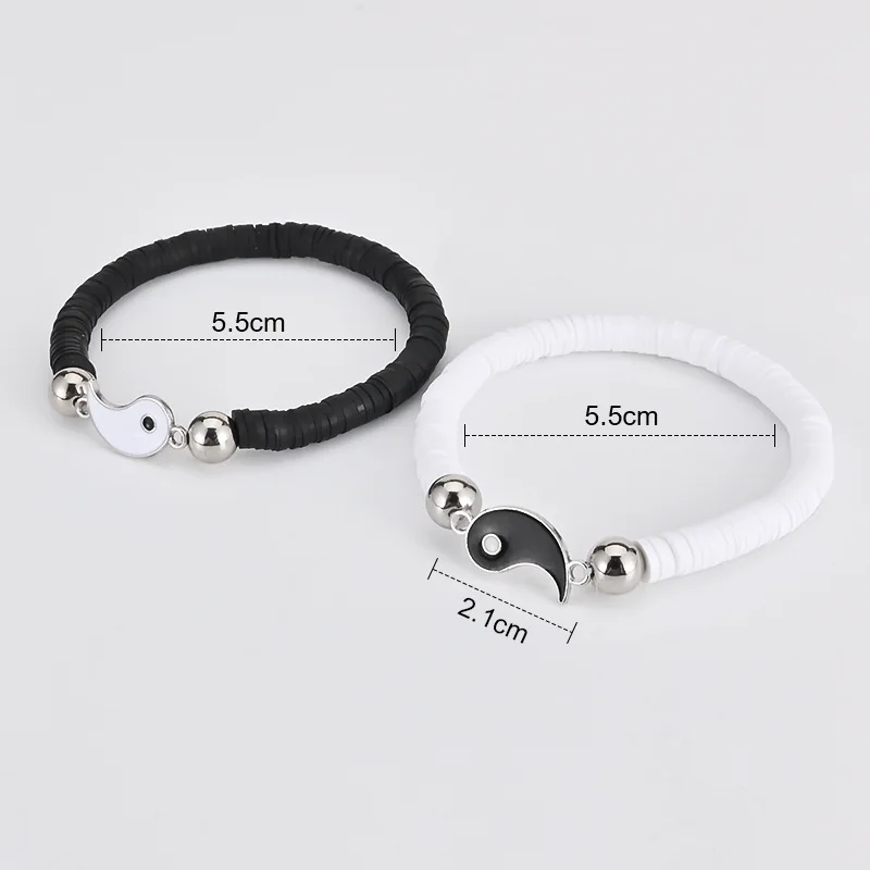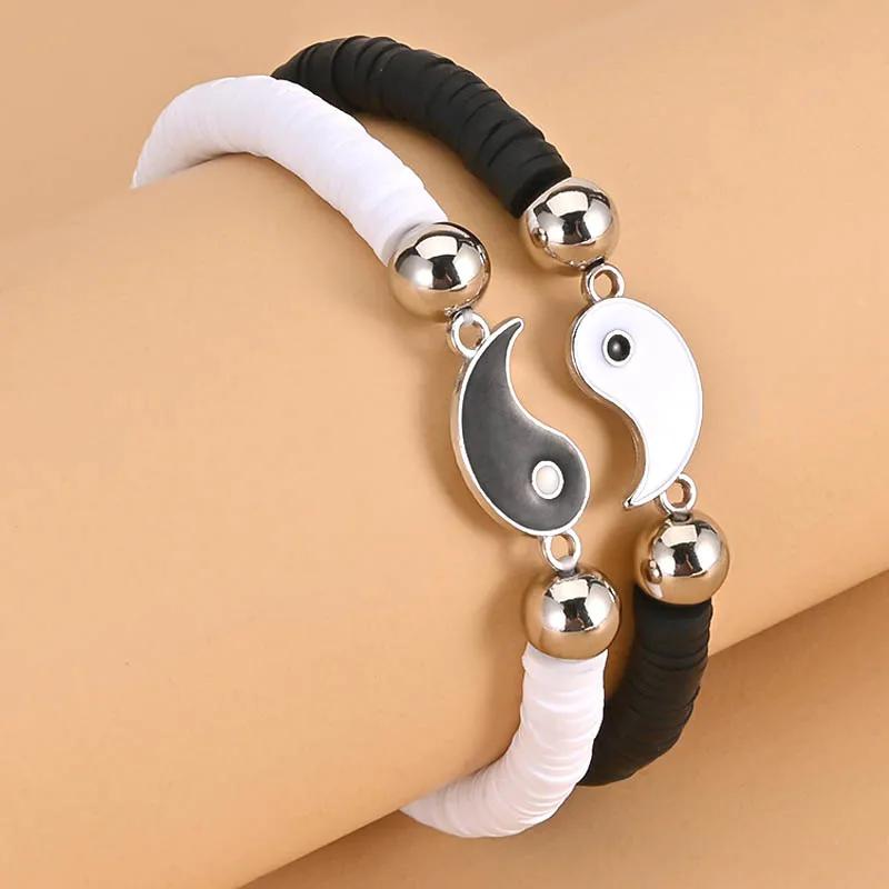 2Pcs/Set Tai Chi Yin Yang Bracelet for Women Girls Best Friends Black White Clay Beads Bracelets Fashion Friendship Jewelry