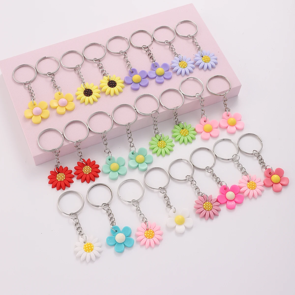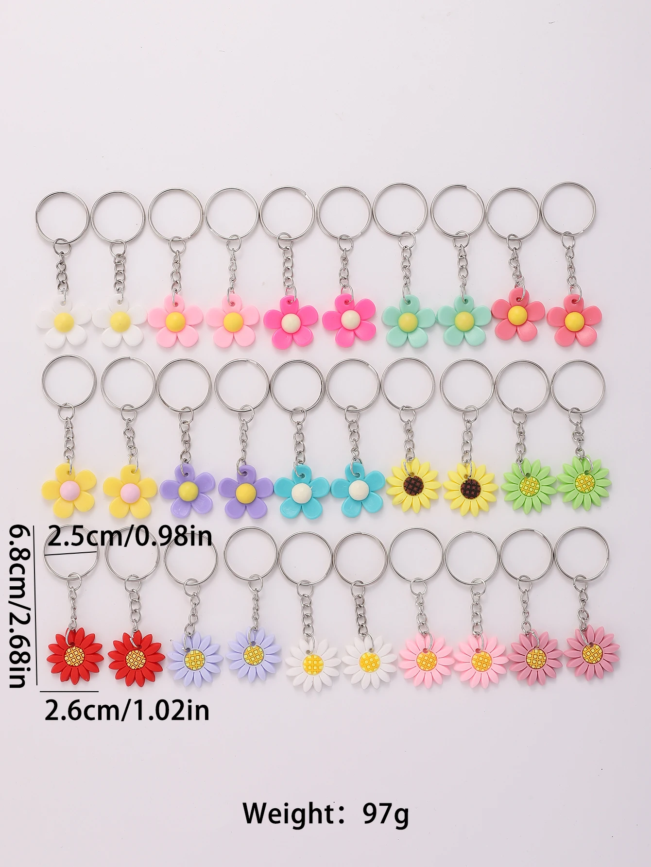 30pcs Flower Charm Keychain PVC Soft Sun Flower Pendant Key Ring Ornaments Wallet Bag Backpack Charm Birthday Party Gift