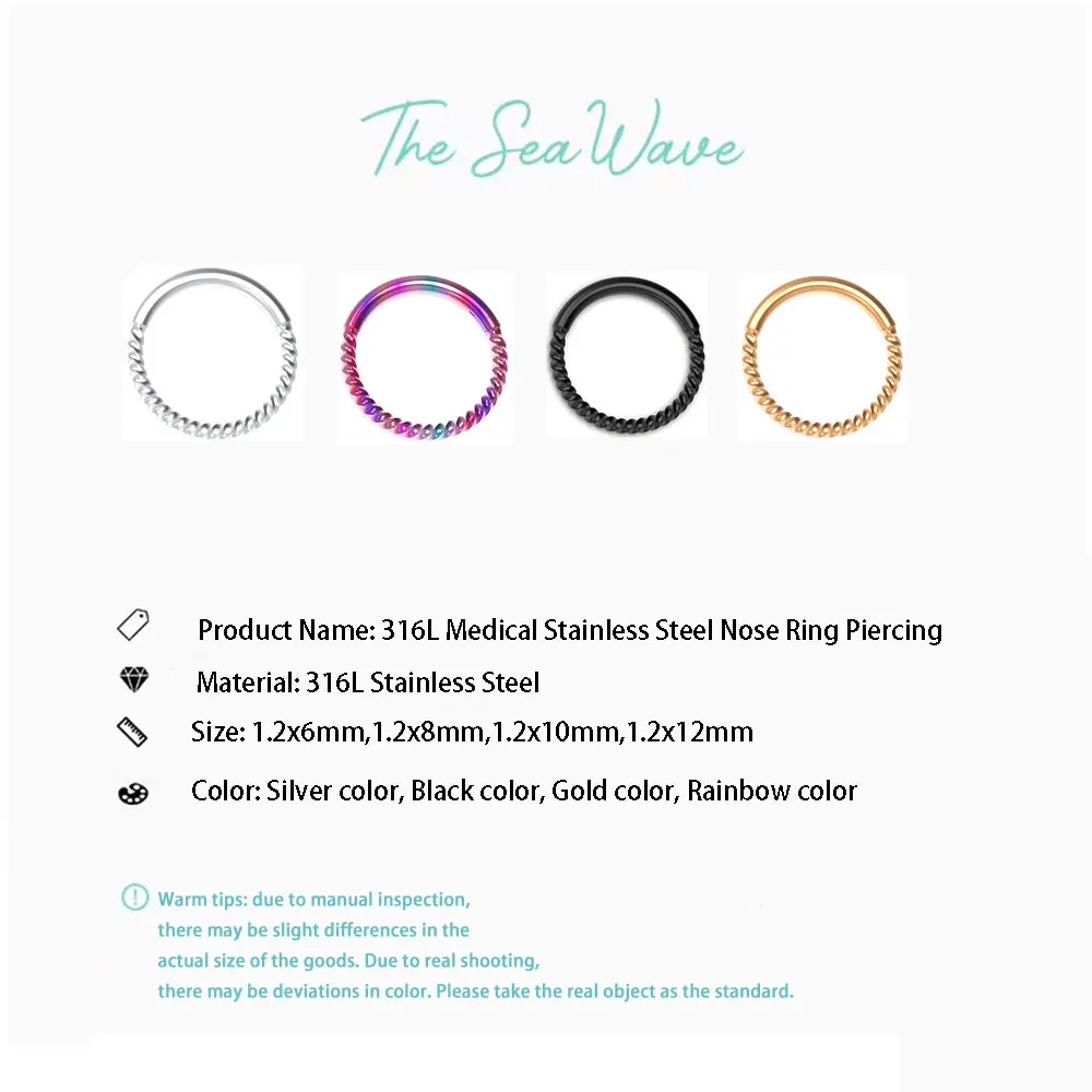 316L Medical Stainless Steel Body Piercing Jewelry Various Specifications Twist Nose Ring Earrings