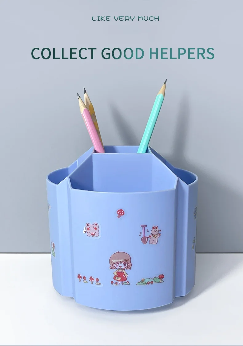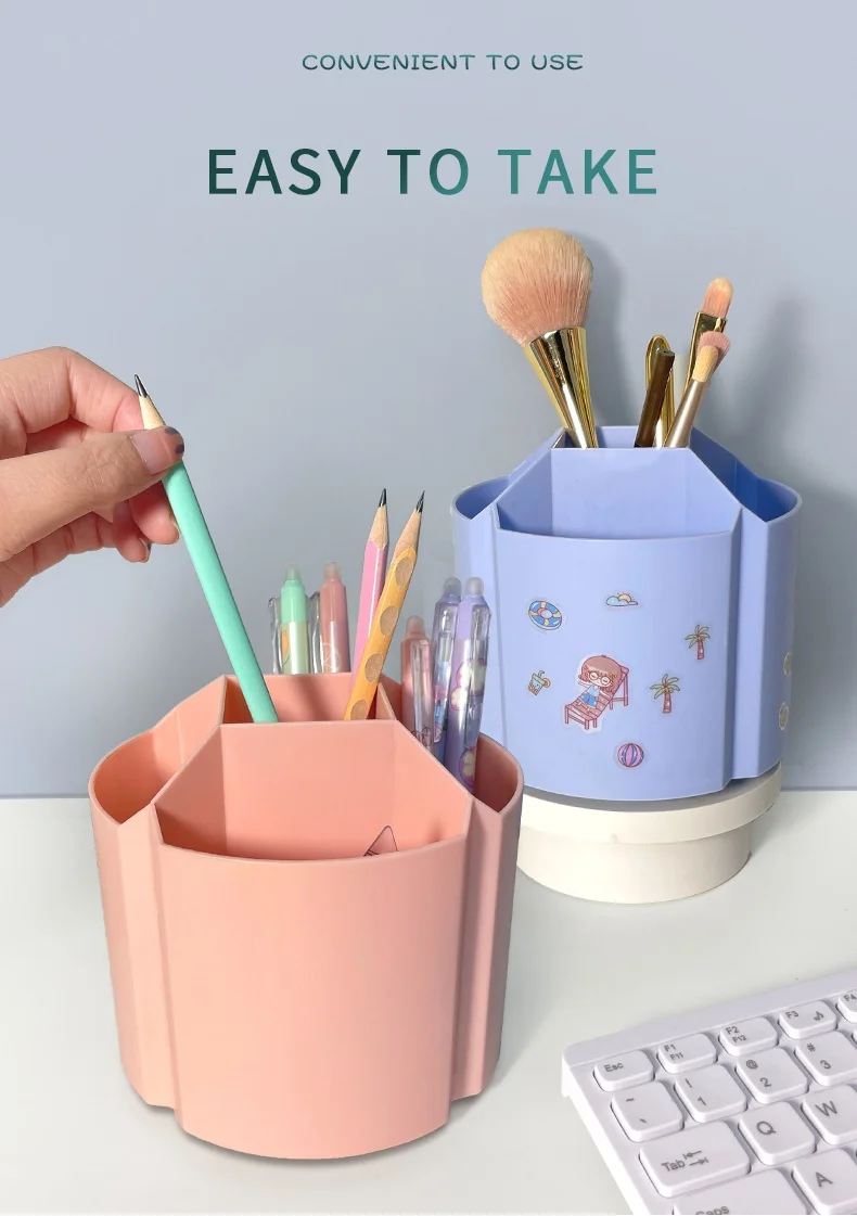 Desk Organizer: This swivel pencil organizer holds 260 gel pens. Designed specifically for the classroom to keep your school stationery organized. The interior has 5 sections and 2 room sizes, making it easy to store various sizes of school supplies such as pens, colored pencils, crayons, scissors, and paintbrushes.