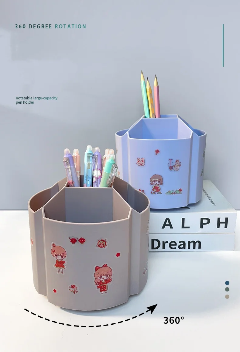 360-degree Rotating Pen Holder Large Capacity Office Desktop Stationery Storage Box Multifunctional Brush Holder Pen Box for Stu