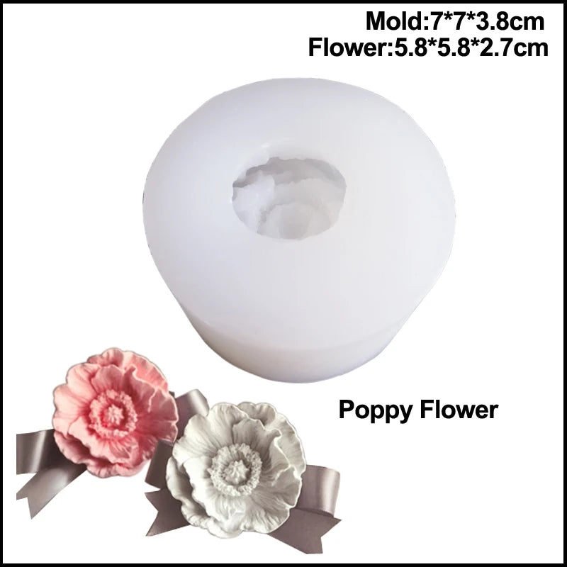 3D 1PCS Flower Candle Wax Silicone Soap Mold for DIY Rose Poppy Peony Gypsum Plaster Mould For Clay Decoration Resin Moulds C392