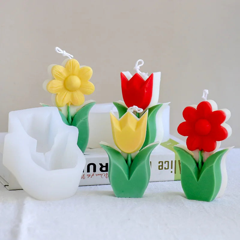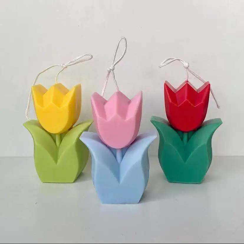 3D Cartoon Tulip Flower Silicone Candle Mold for DIY Handmade Aromatherapy Candle Plaster Ornaments Handicrafts Soap Mould tool