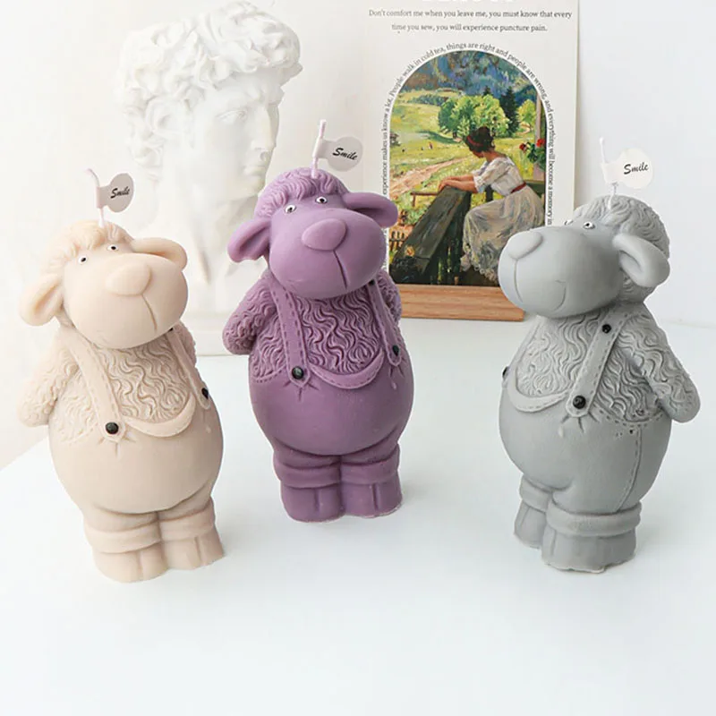 3D Overalls Sheep Candle Silicone Mold Standing Animal Sheep Scented Candle Gypsum Mold DIY Chocolate Baking Supplies Home Decor