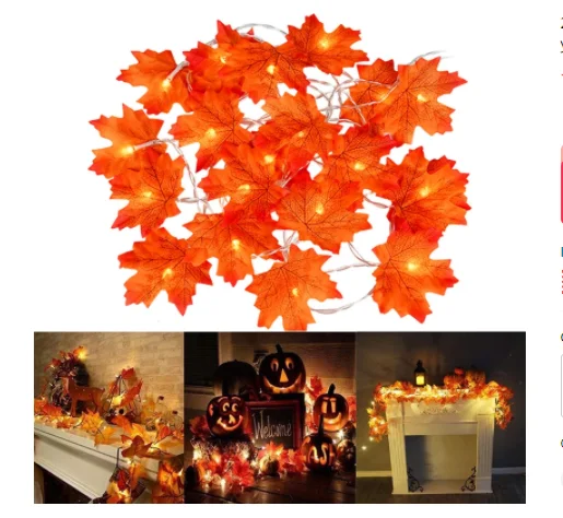 3M 20 LED Pumpkin Maple Leaf String Lights Garland Led Fairy Lights for Halloween Decoration Autumn Decor Fall Home Decor