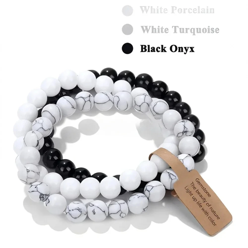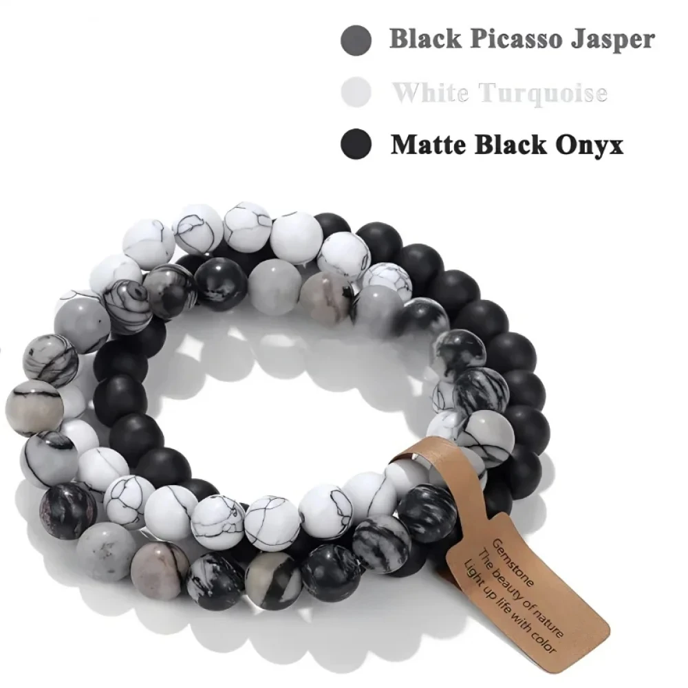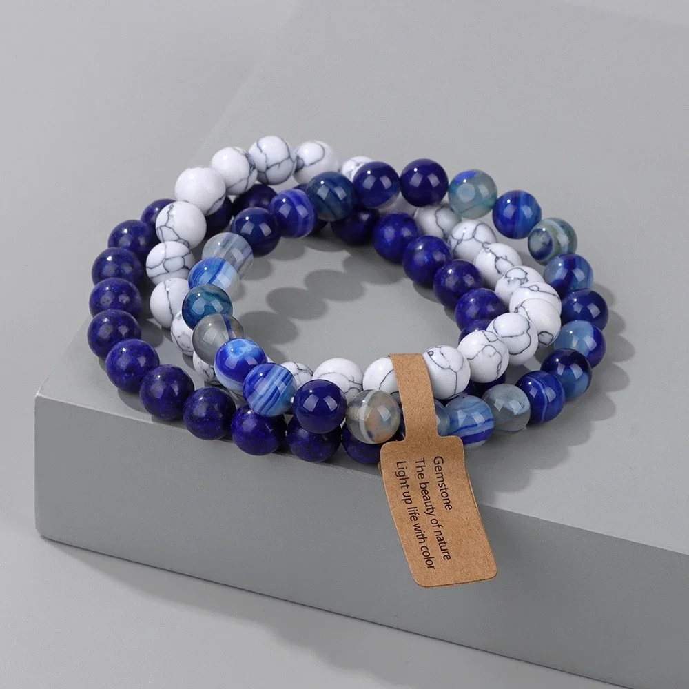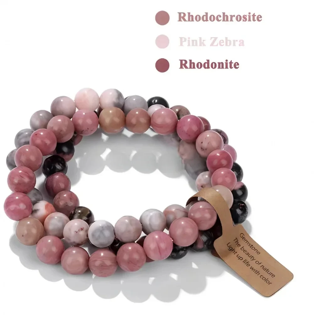 3PCS Natural Stone Bracelet Pink Quartz Citrine Amethyst Turquoise Round Gravel Shape Piece Bead Bracelet Set For Men And Women