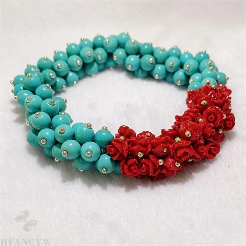 4-5mm beads Natural Turquoise Red Coral Stretch Bracelet Yoga Fancy Bless Pray Cuff Men's Classic Meditation Lucky Reiki Prayer