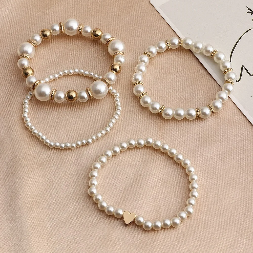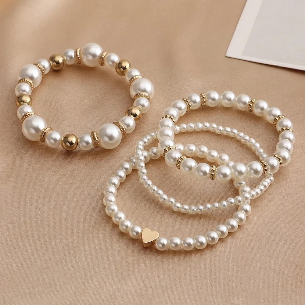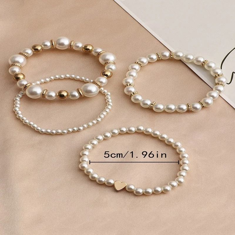4 Pcs French Retro Simple Imitation Pearl Bracelets Set For Women Bridal Fashion Temperament Combination bracelet Jewelry Gift