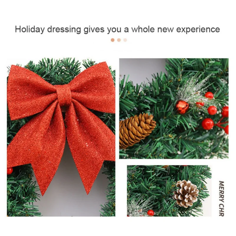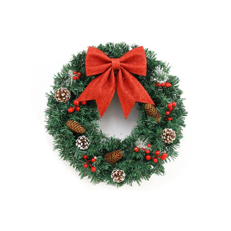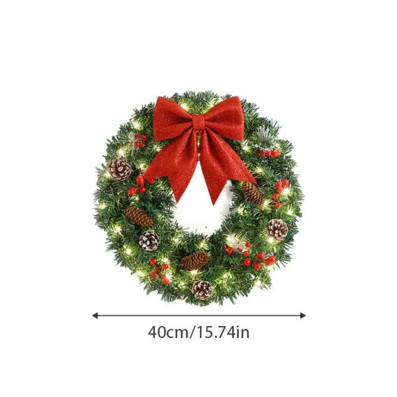 40/50/60cm LED Lights Rattan Vine Pine Cone Christmas Wreath New Year Xmas Garlands for Door Windows Wall Hanging Decor