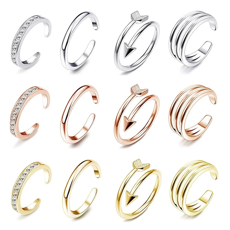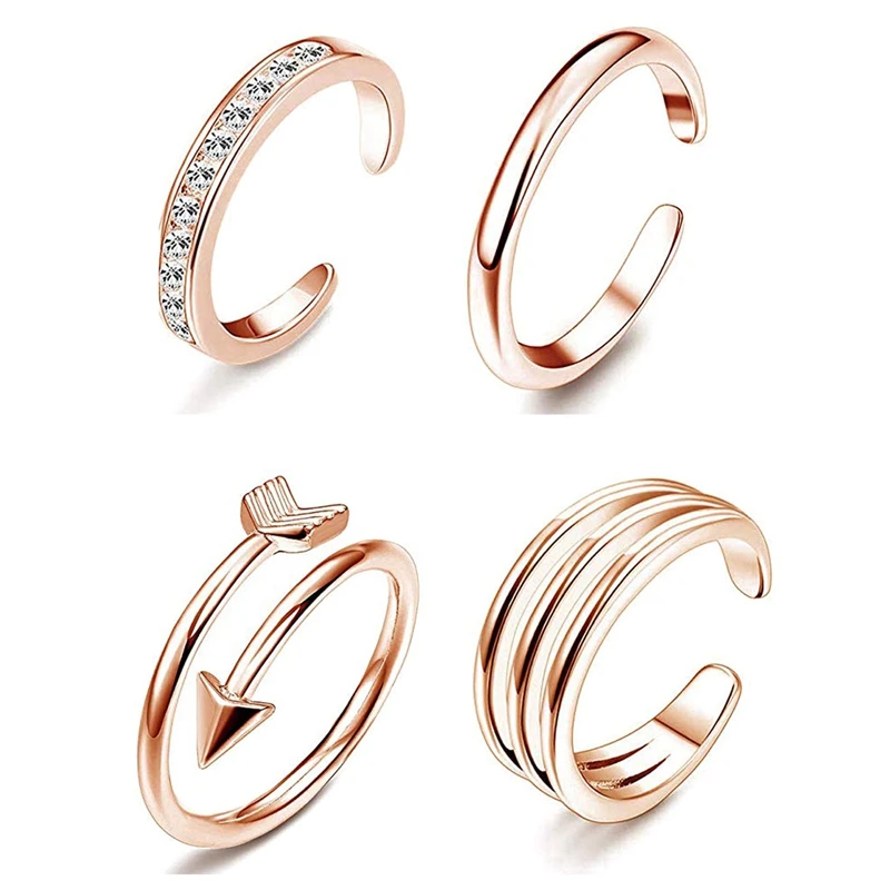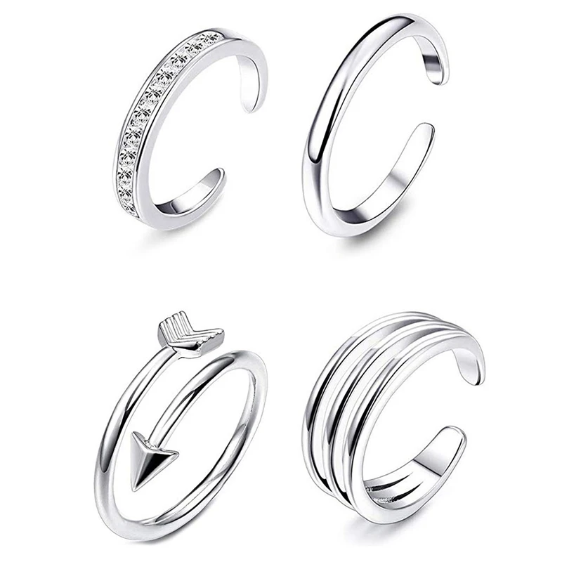 4Pcs Simple Alloy Crystal Foot Ring Adjustable Opening Toe Ring for Women Girl Summer Beach Vacation Jewelry Finger Ring