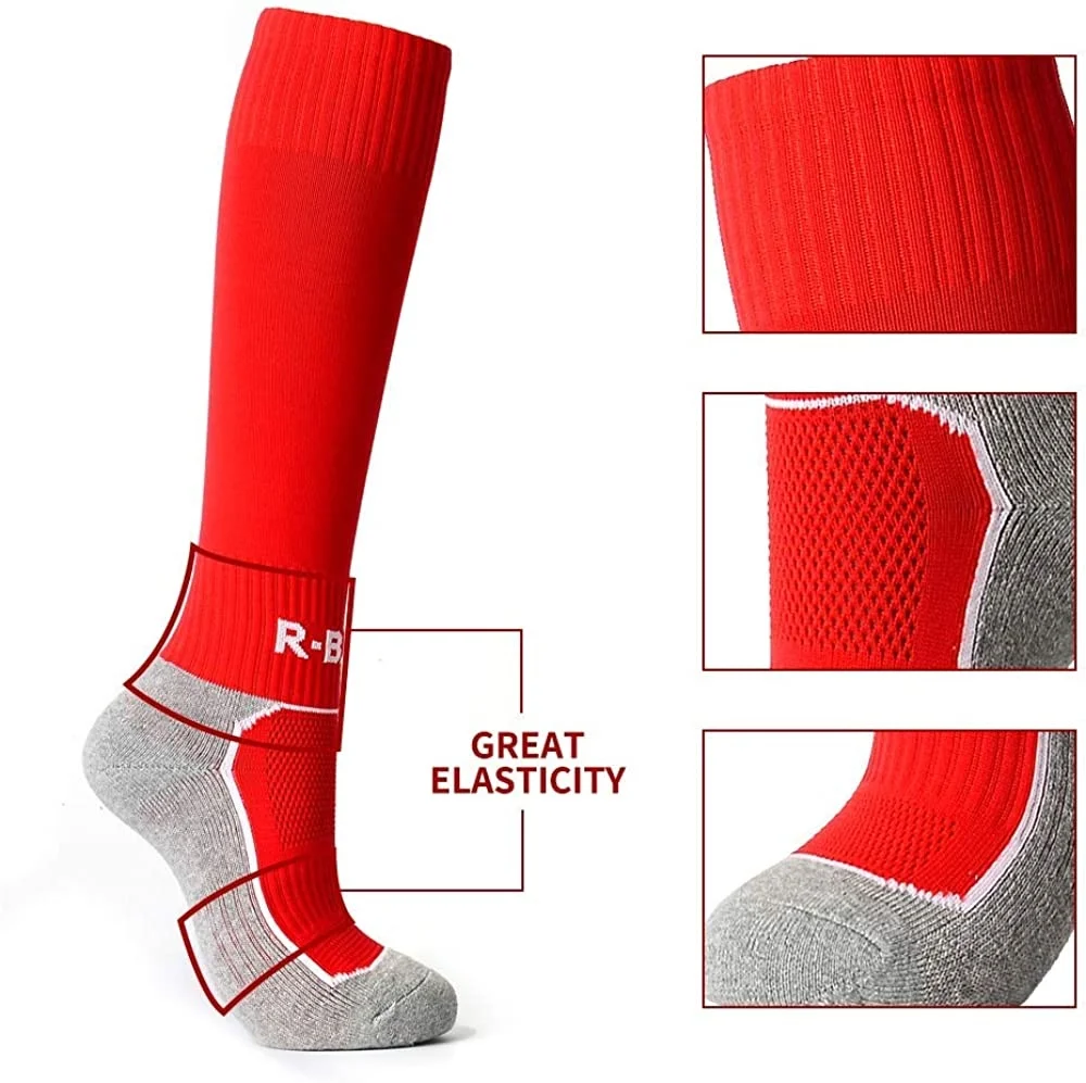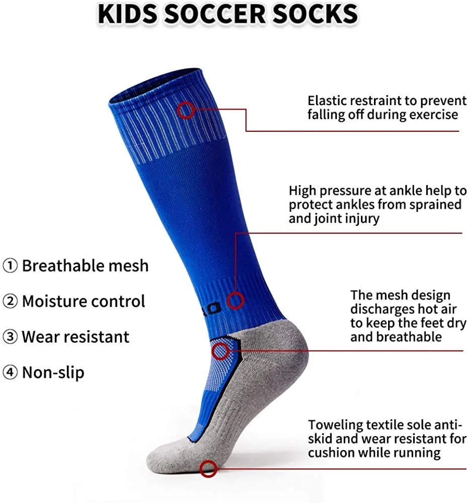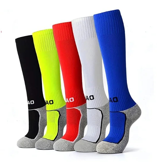 5 Pairs Kids Soccer Socks Boys Girls High Tube Long Knee Athletic Football Socks (4-18 Years) Children Cotton Stocking Football