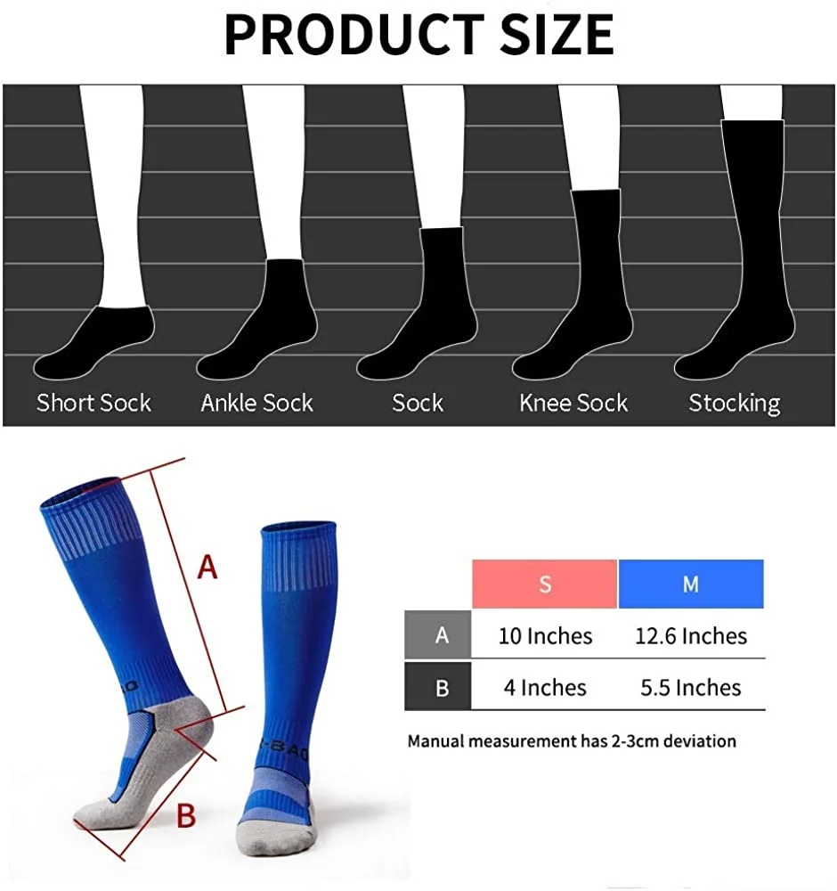 -[Material]73.3% cotton, 26.3% nylon. Flexible, retractable and suitable for your feet. This toe support football socks is suitable for 7-18 years old, kids / older children / teen / boy / girl's shoe size 2 - 6 Y.