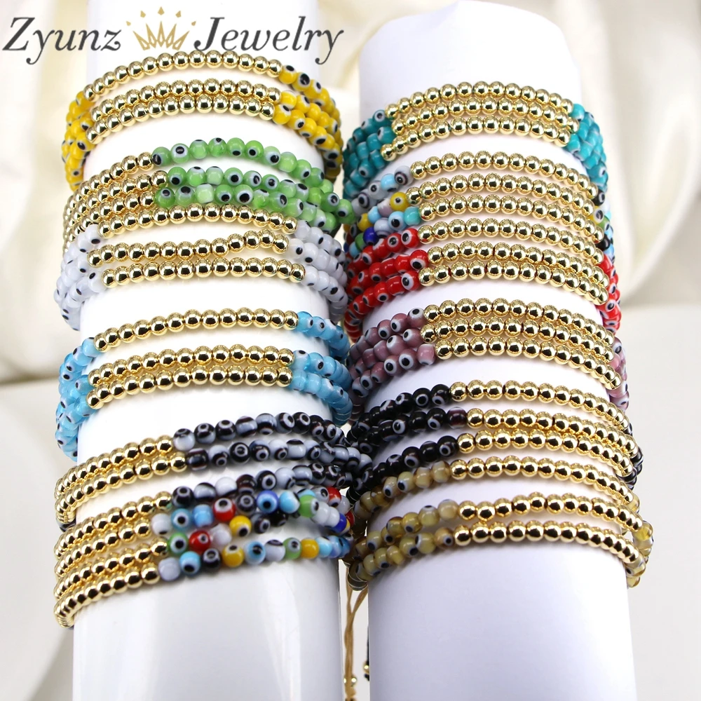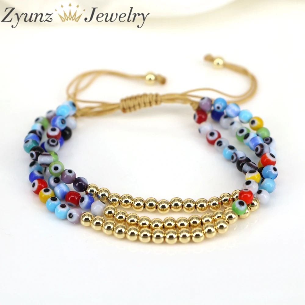 Evil Eye Glass Beads Bracelet Colorful Lampwork Macrame Bracelet Bangle Gold Ball Beads For Women Men Turkish Jewelry