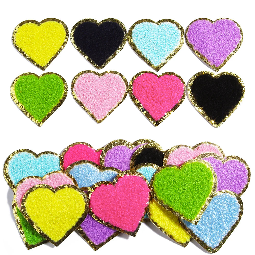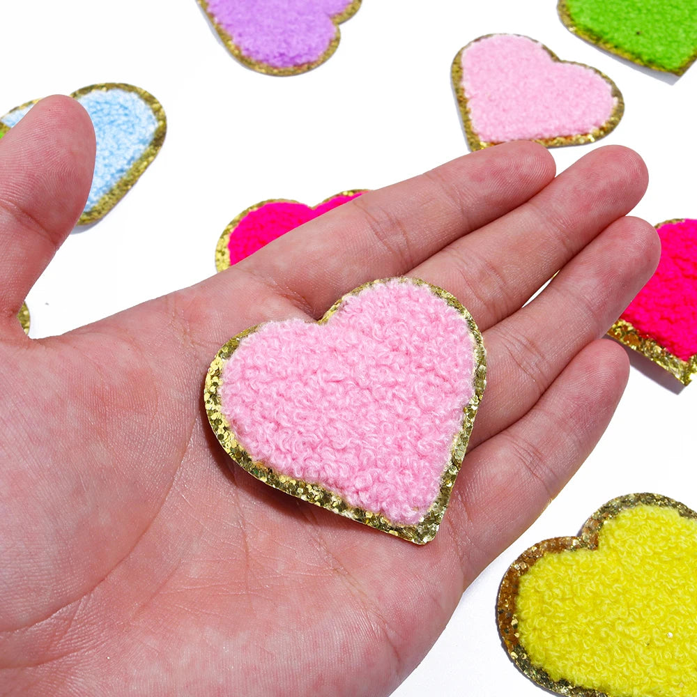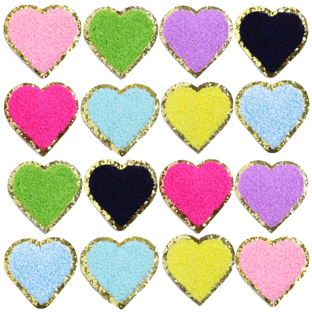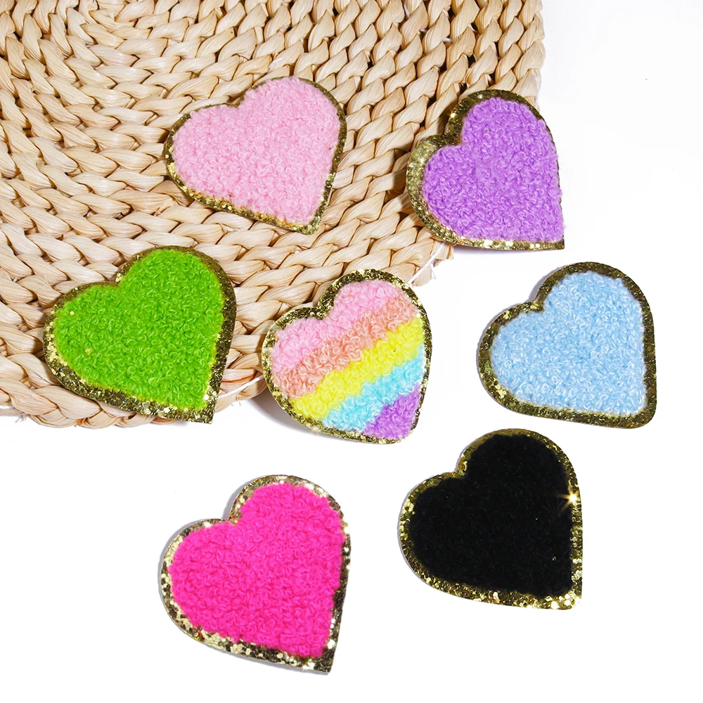 5Pcs/Lot Love Heart Wool Embroidery Patches Gold Glitter Edged Patches Iron On For DIY Crafts Sticker Bags Clothing Decoration