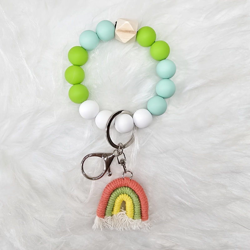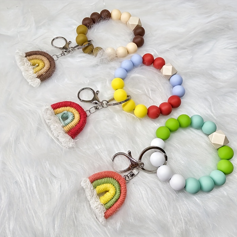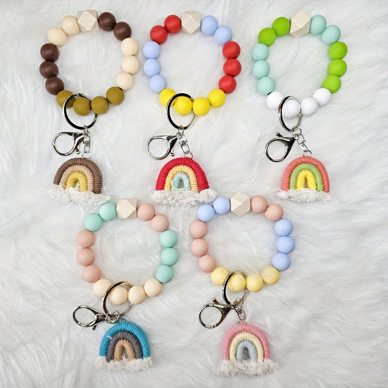 5pcs Silicone Beaded Keychain Set With Rainbow Tassel Charms - Perfect Gift For Friends & Mom, Decorative Bag Accessories