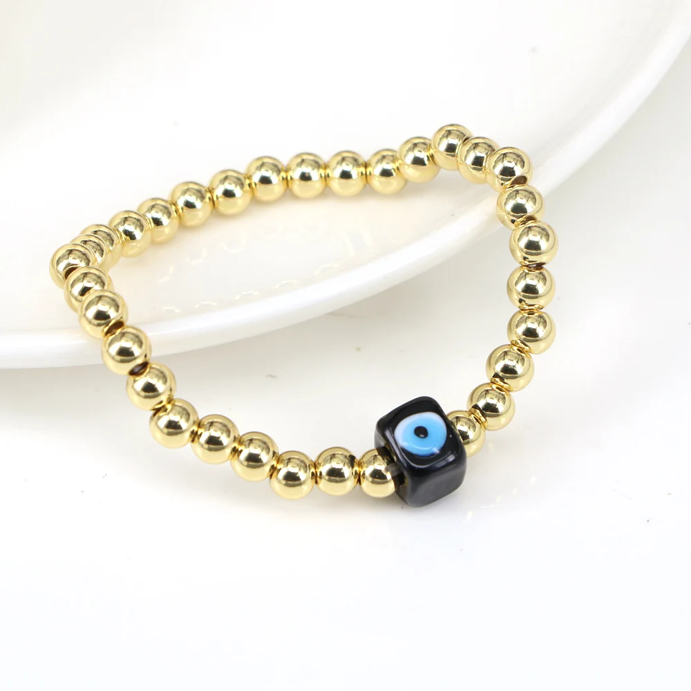 5PCS, Turkish Evil Eye Bracelet Sets Colorful Square Lampwork Bead Eyes Lucky Couple male Bracelets for Women Charm Jewelry
