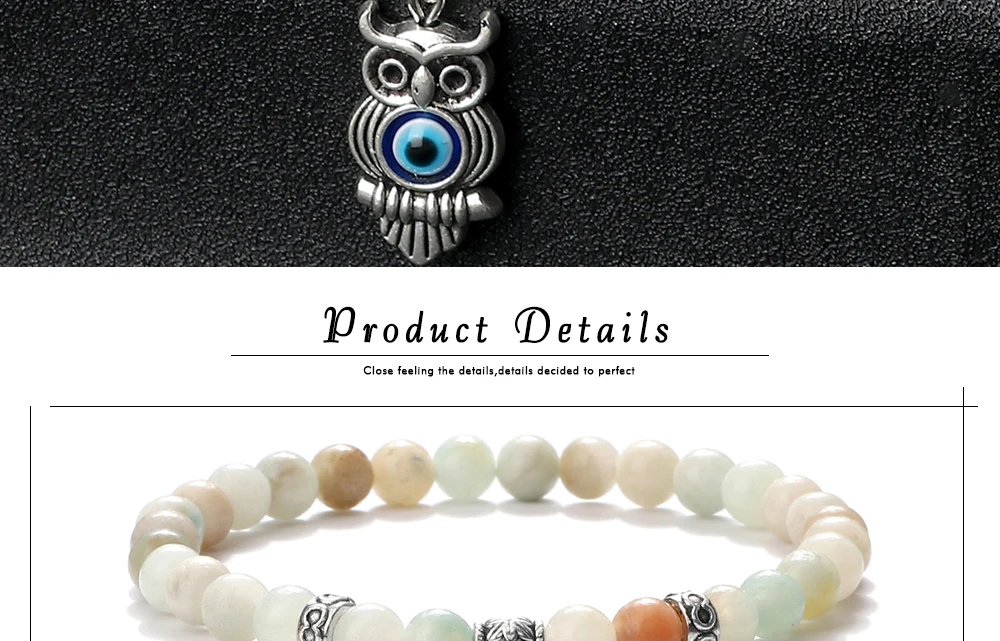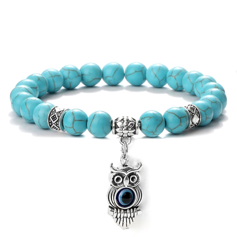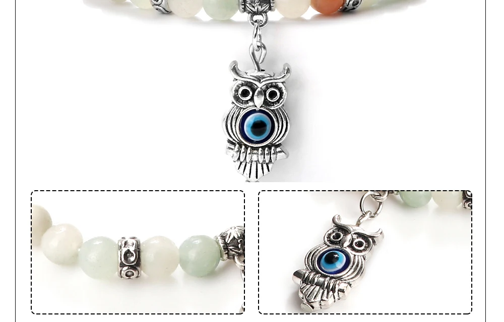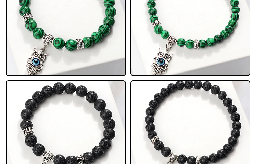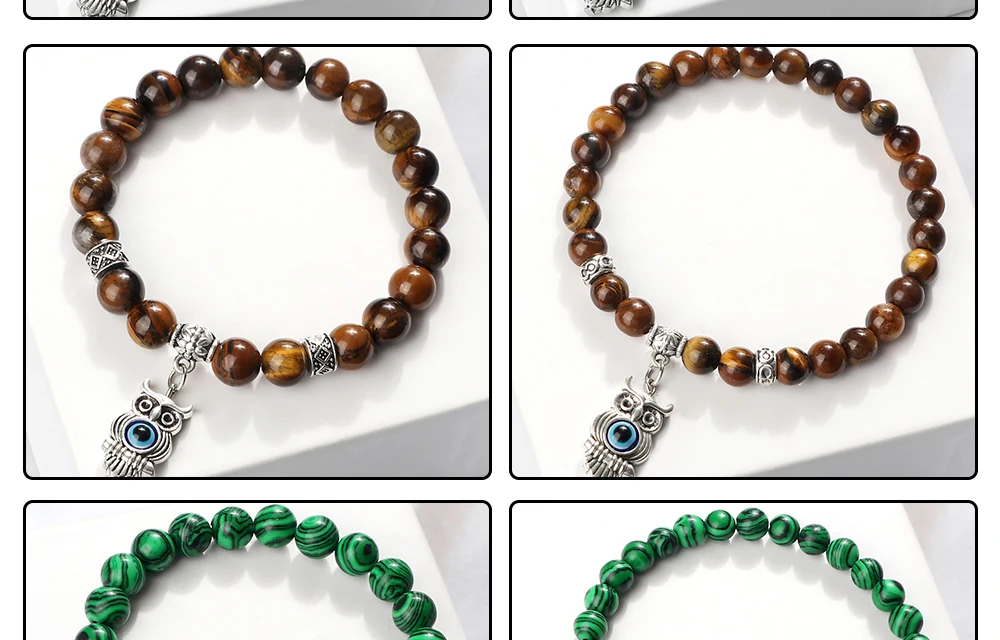 6 8mm Chakra Beads Men Bracelets Charm Owl Evil Eye Pendant Classic Tiger Eye Stone Agate Quartz Malachite Women Yoga Jewelry