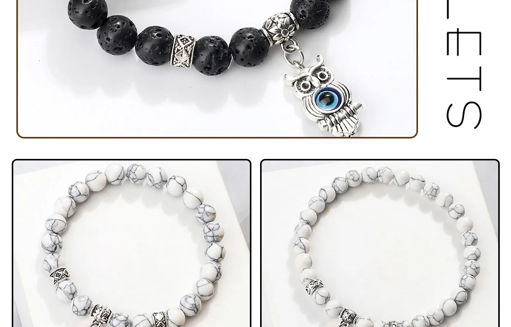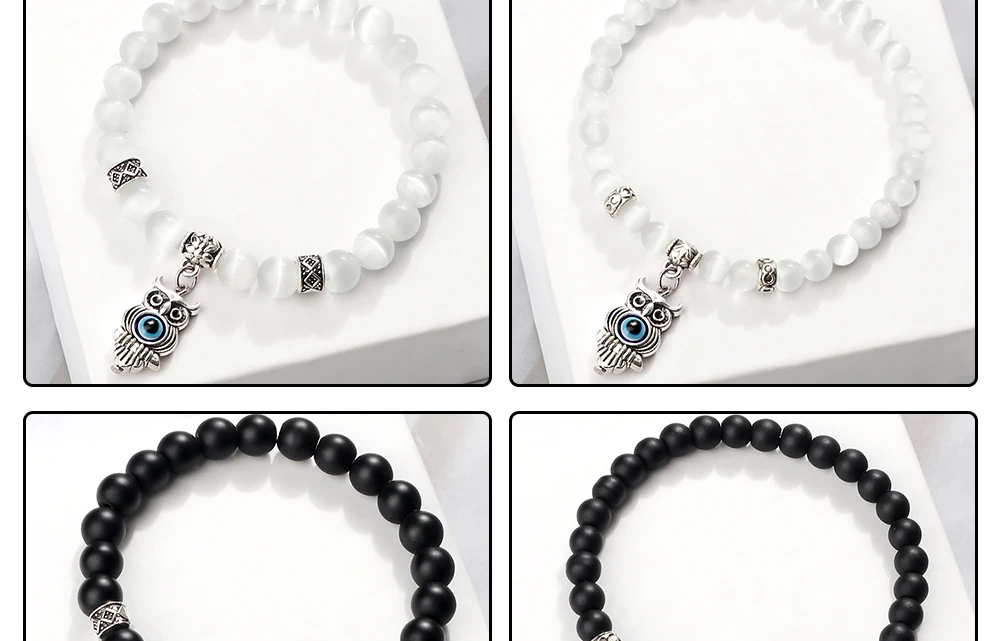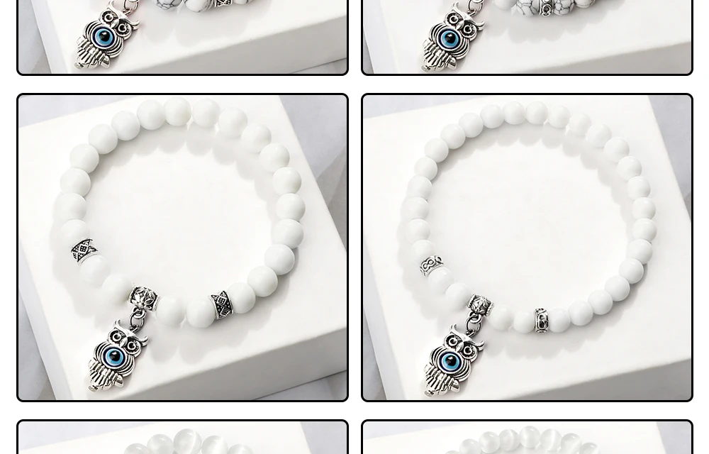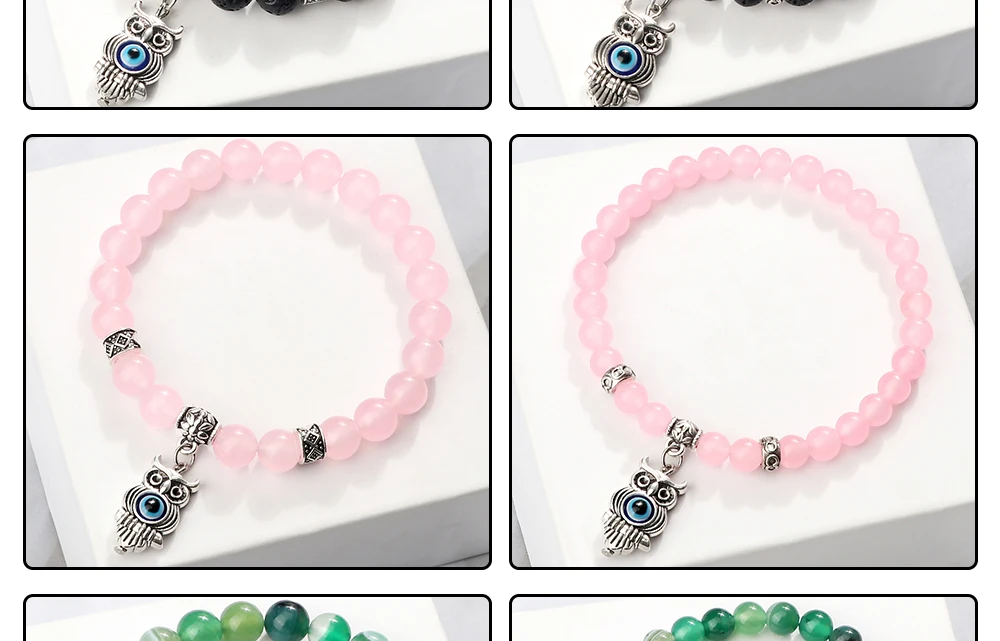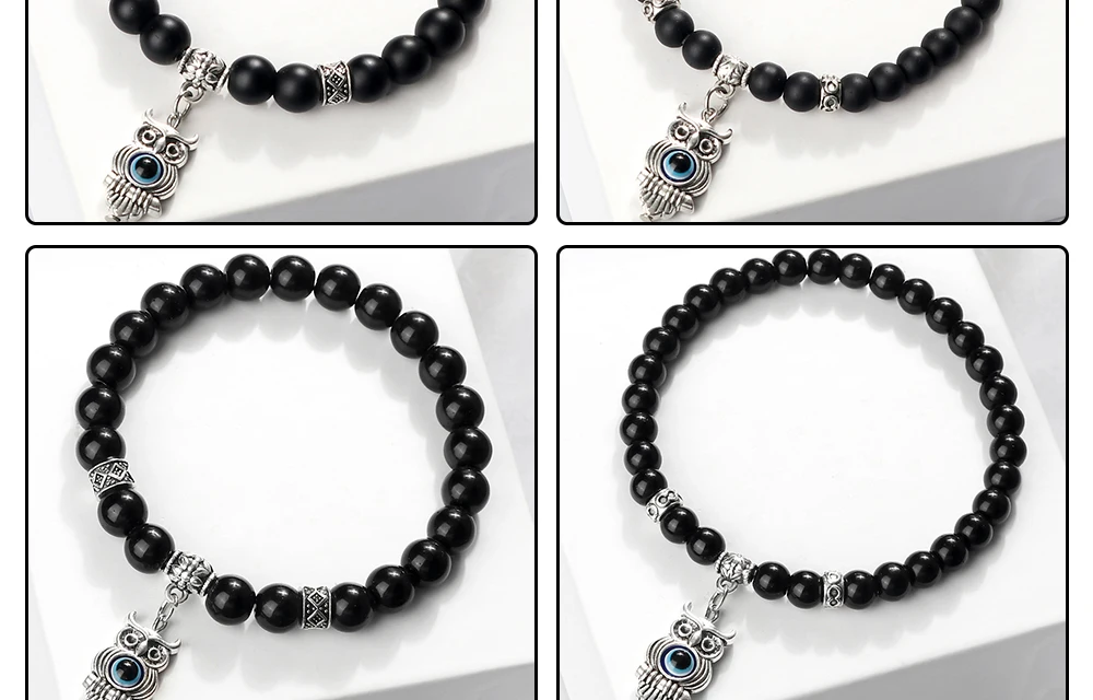 6 8mm Chakra Beads Men Bracelets Charm Owl Evil Eye Pendant Classic Tiger Eye Stone Agate Quartz Malachite Women Yoga Jewelry