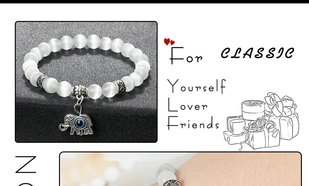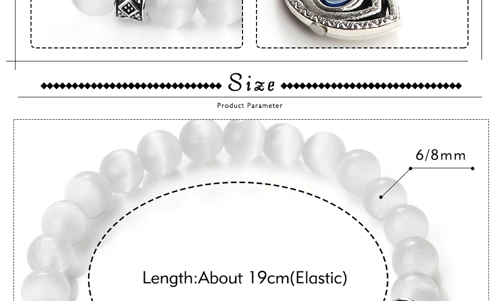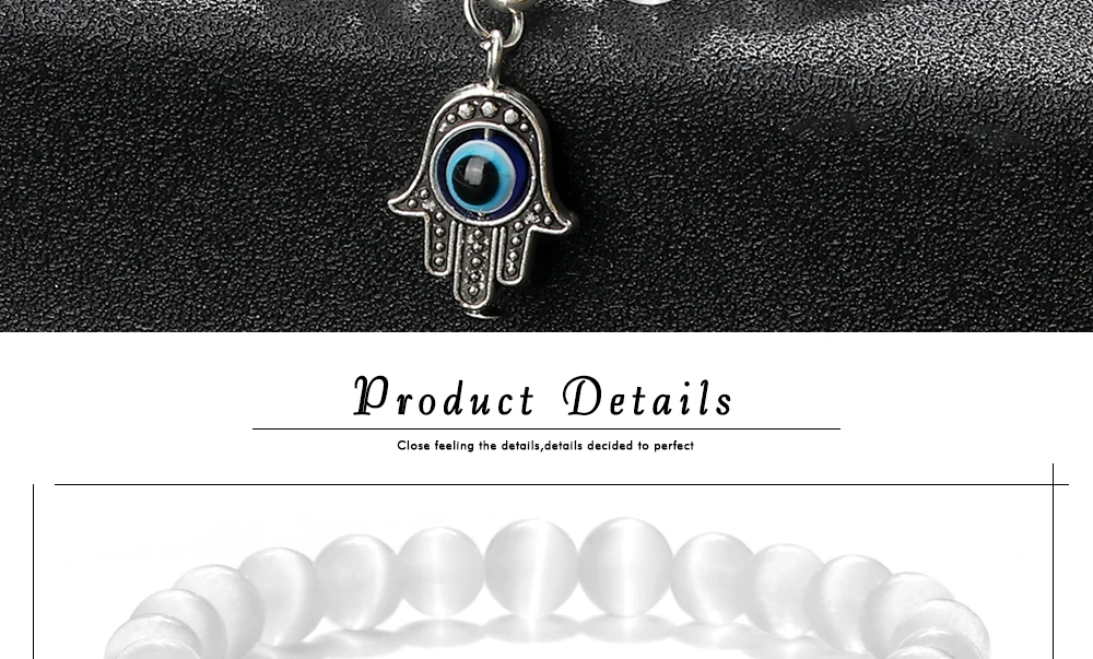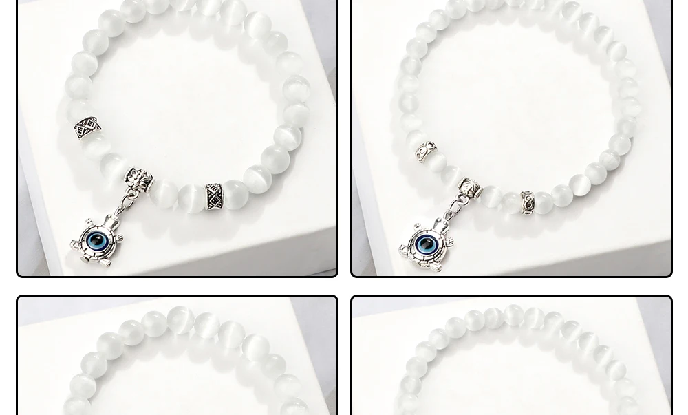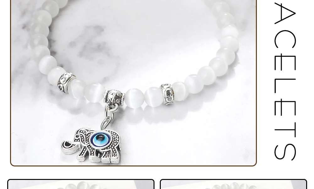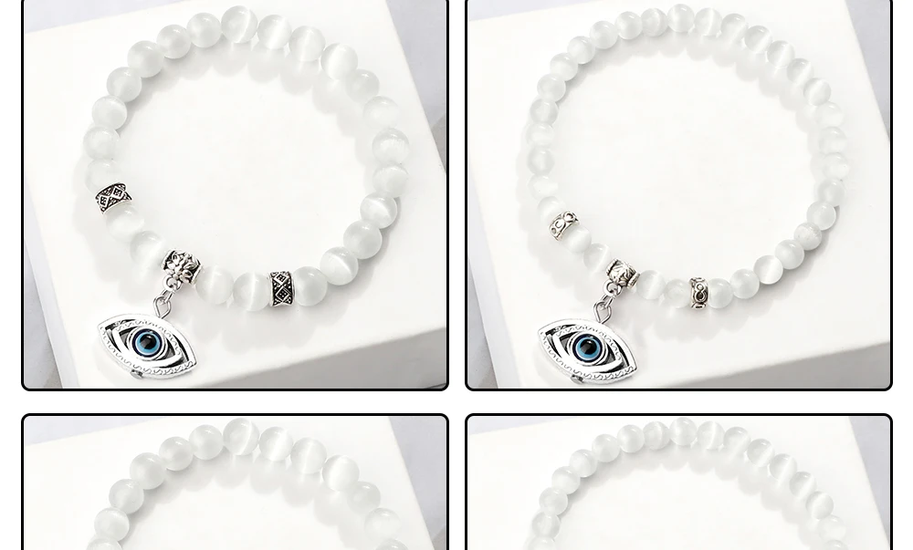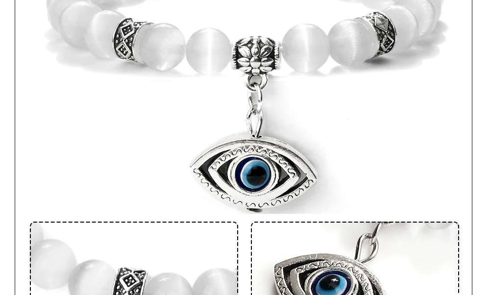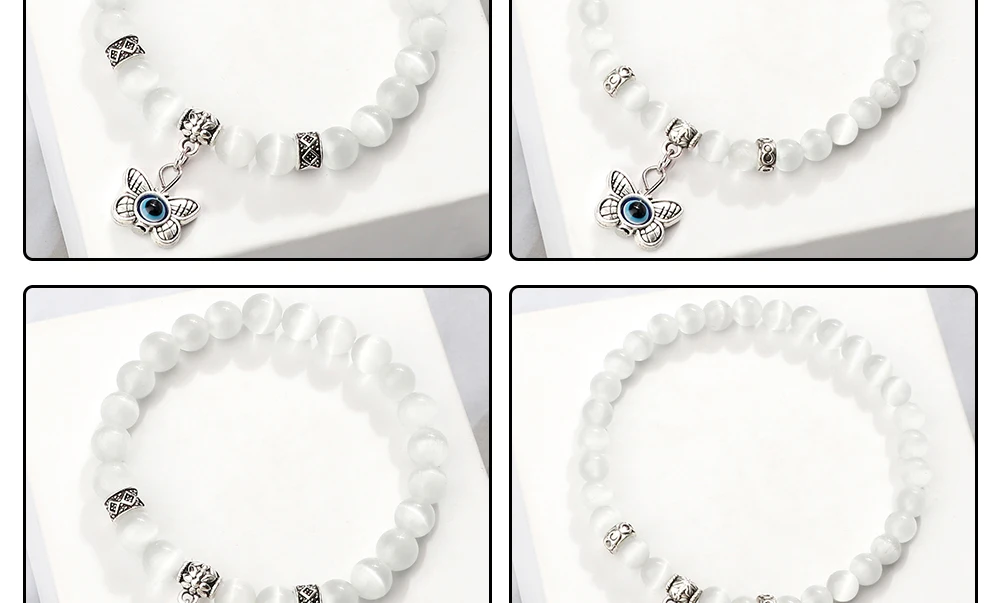 6 8mm Natural Cat Eye Stone Bracelet White Opal Beads Butterfly Hand Of Fatima Women Bracelets & Bangles Lucky Evil Eye Jewelry