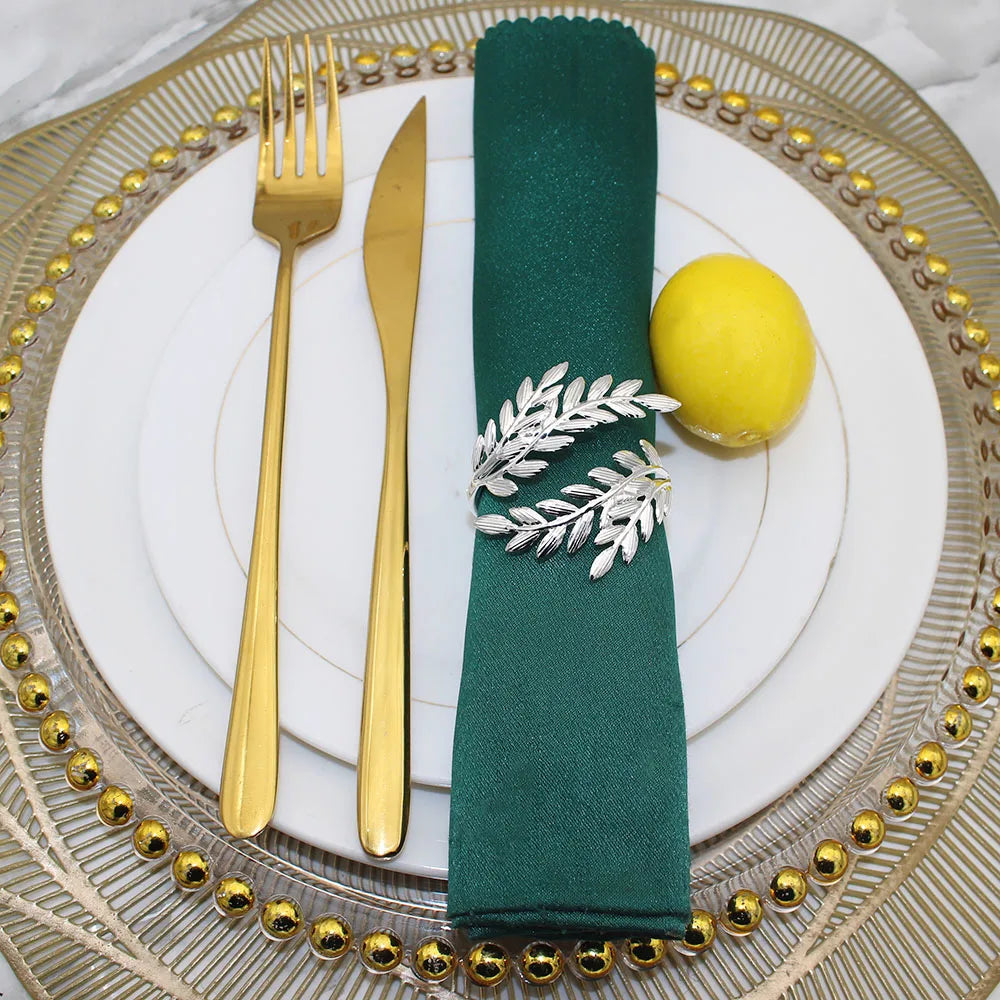 6Pcs Silver Leaf Napkin Rings Metal Napkin Rings Holder for Wedding Decorations Kitchen Dining Table Decor HWL88
