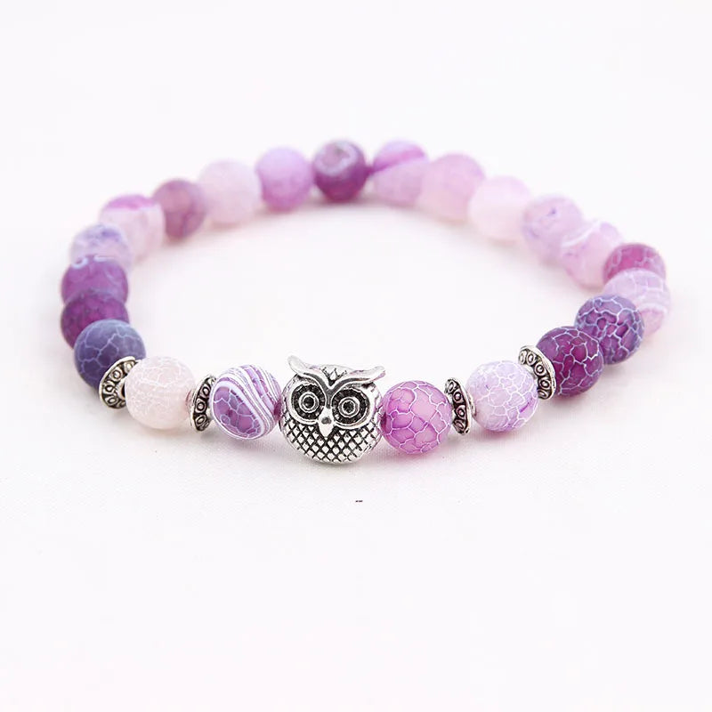 8mm Energy Weathered Agates Chakra Bracelet Yoga Owl Accessories Bracelet Turquoises Black volcanic stone Variety Choice