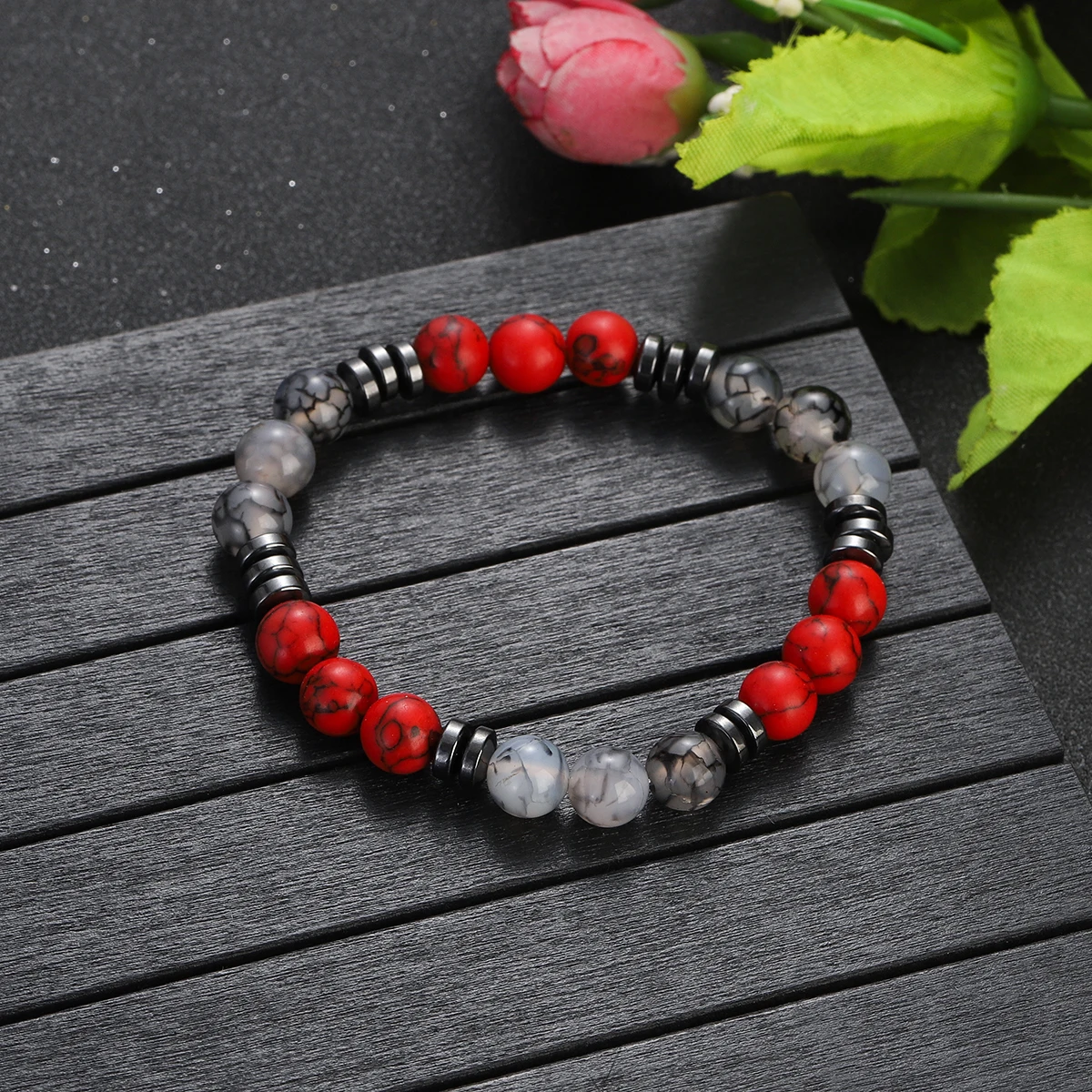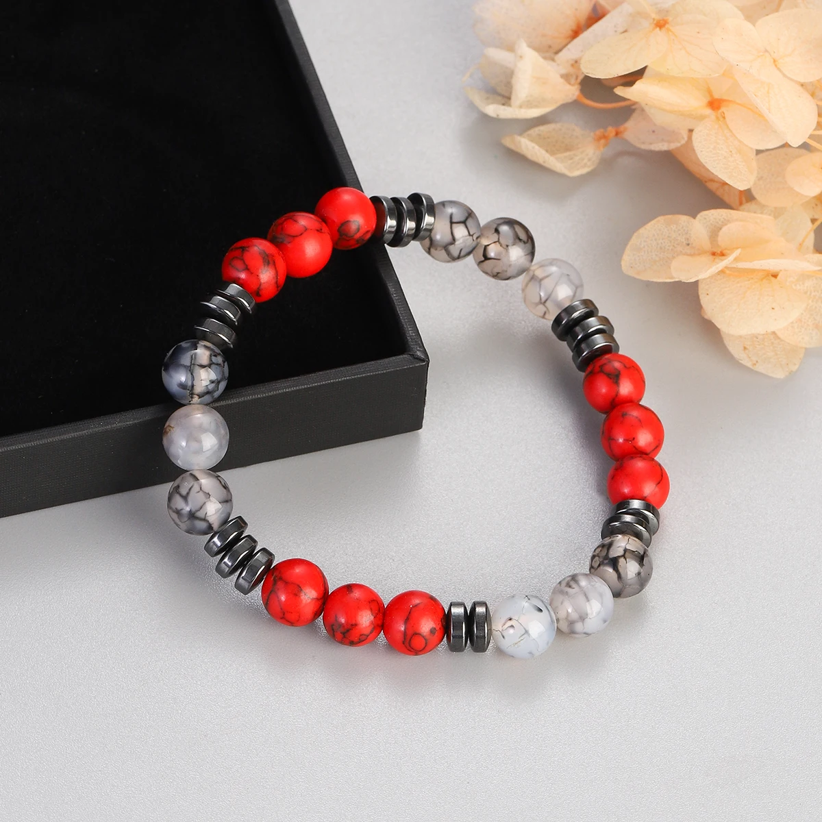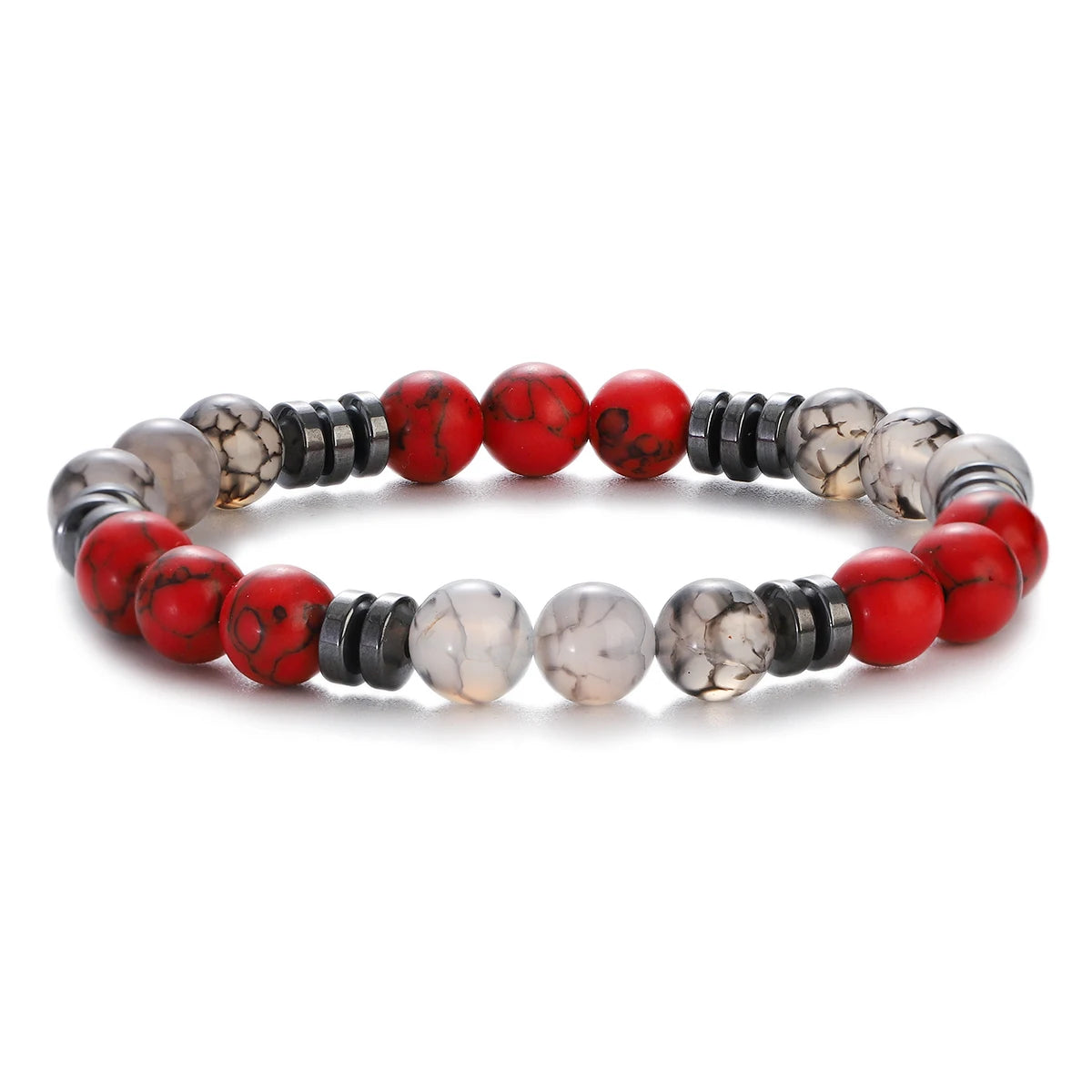 8mm Red Turquoises Beaded Bracelets Men Women Nature Stone Obsidian Hematite Weight Loss Health Protection Soul Jewelry