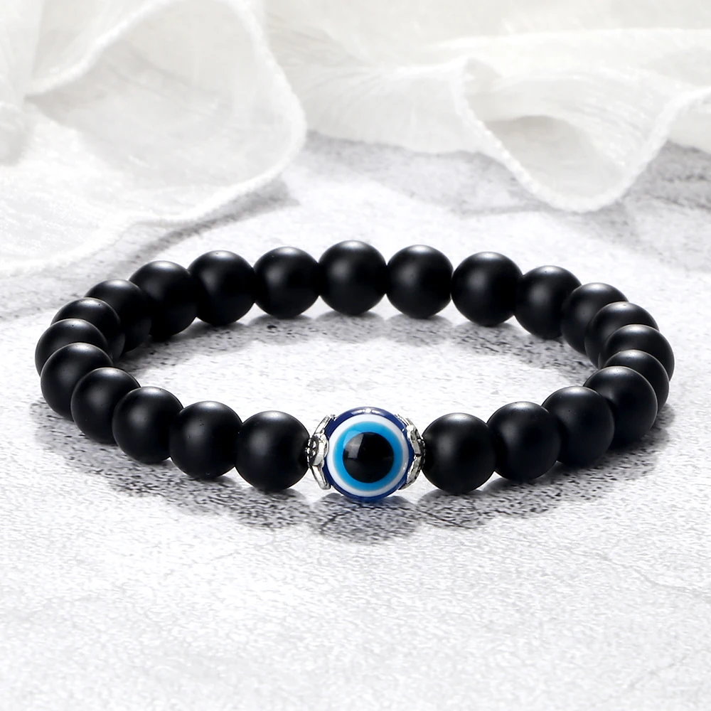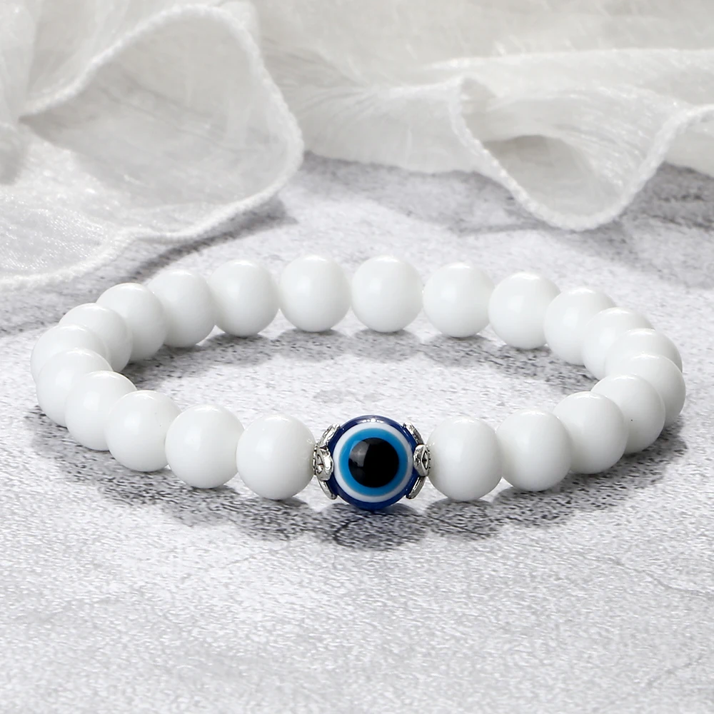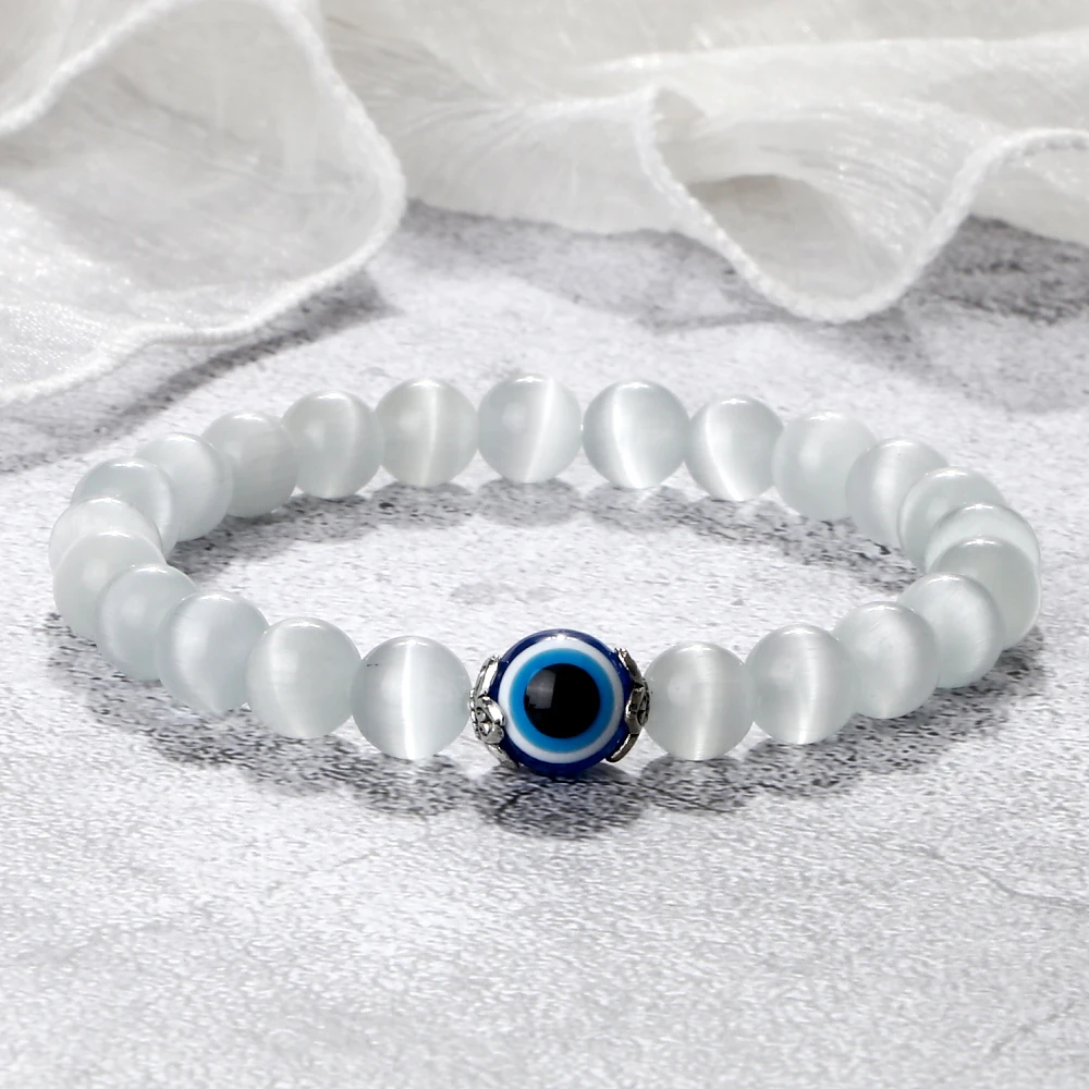8mm White Cat Eye Stone Beads Evil eye Bracelet Men Tiger Eye Black Beads Turkish style Strand Bracelet For Women female Jewelry