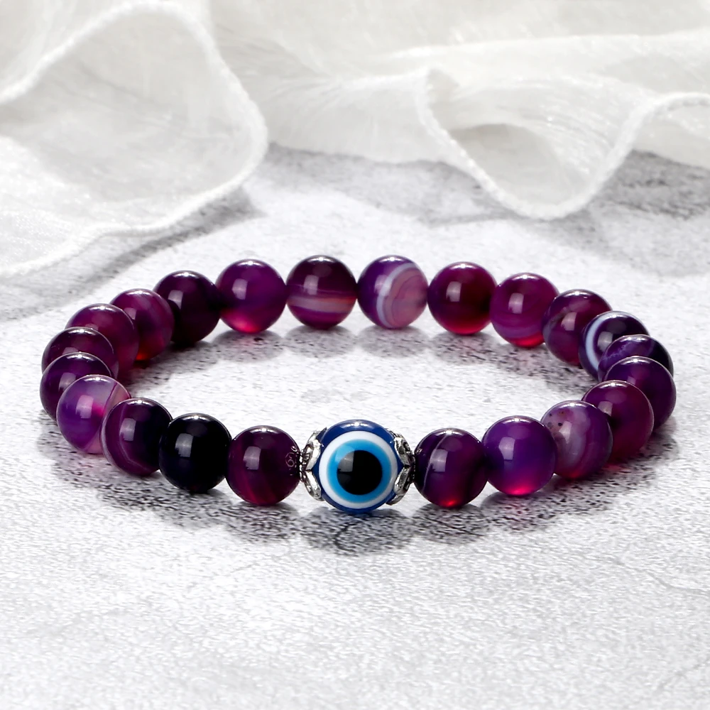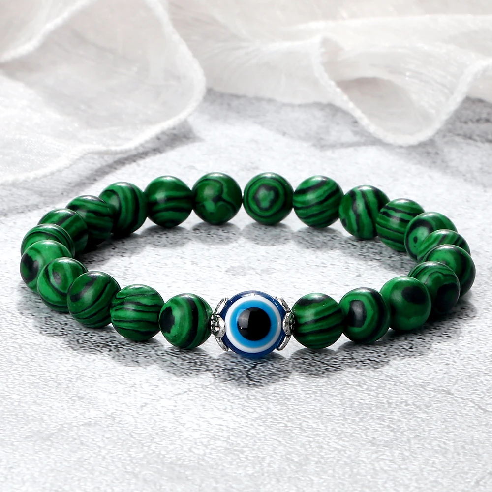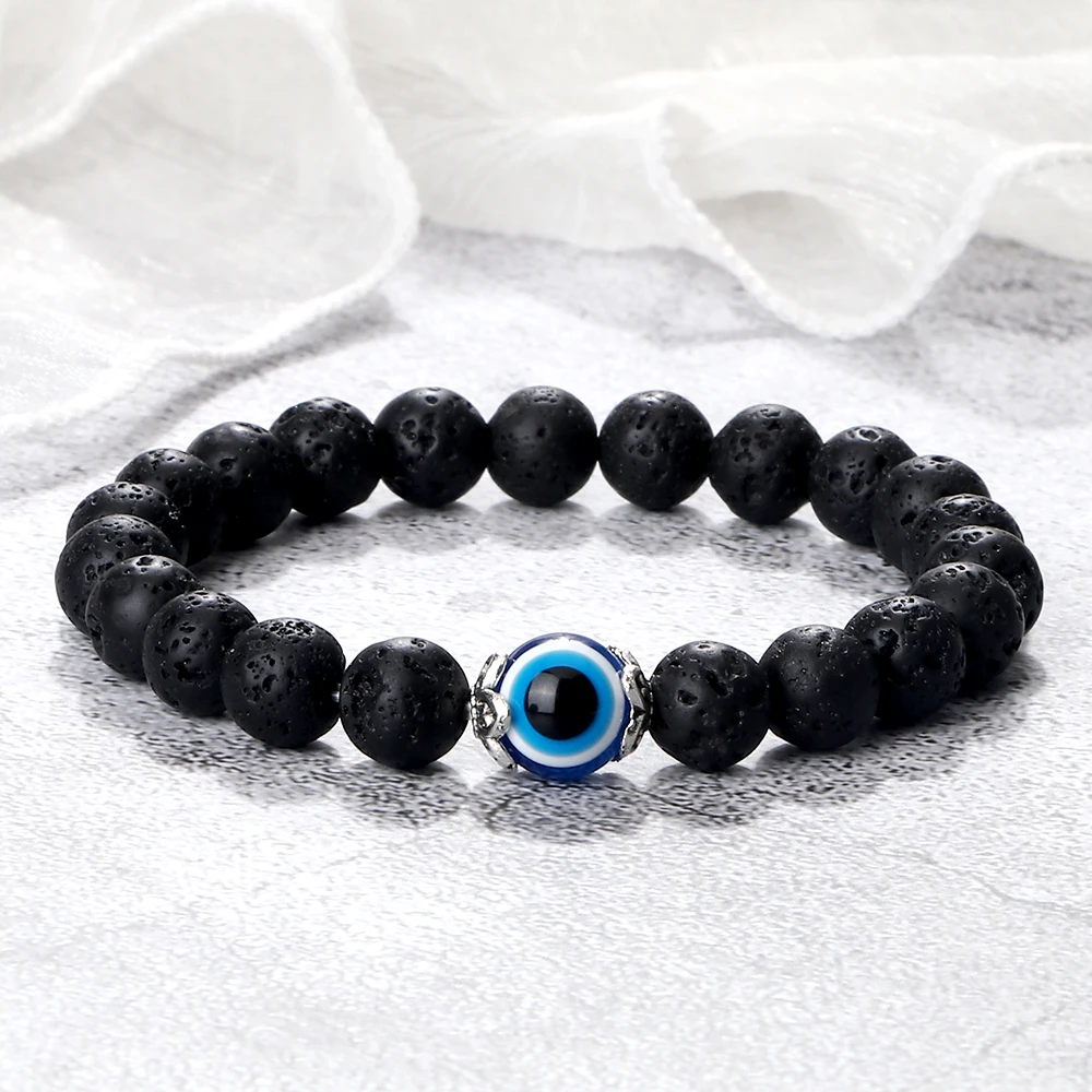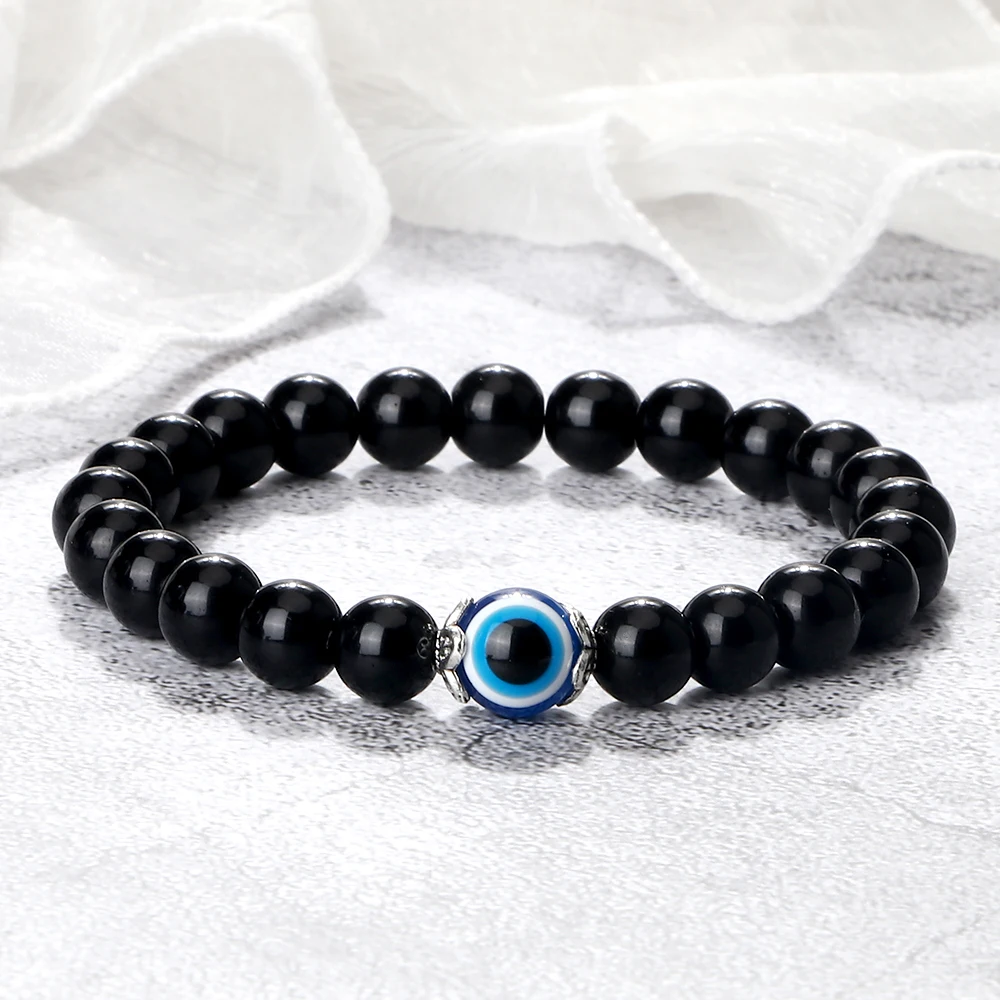 8mm White Cat Eye Stone Beads Evil eye Bracelet Men Tiger Eye Black Beads Turkish style Strand Bracelet For Women female Jewelry