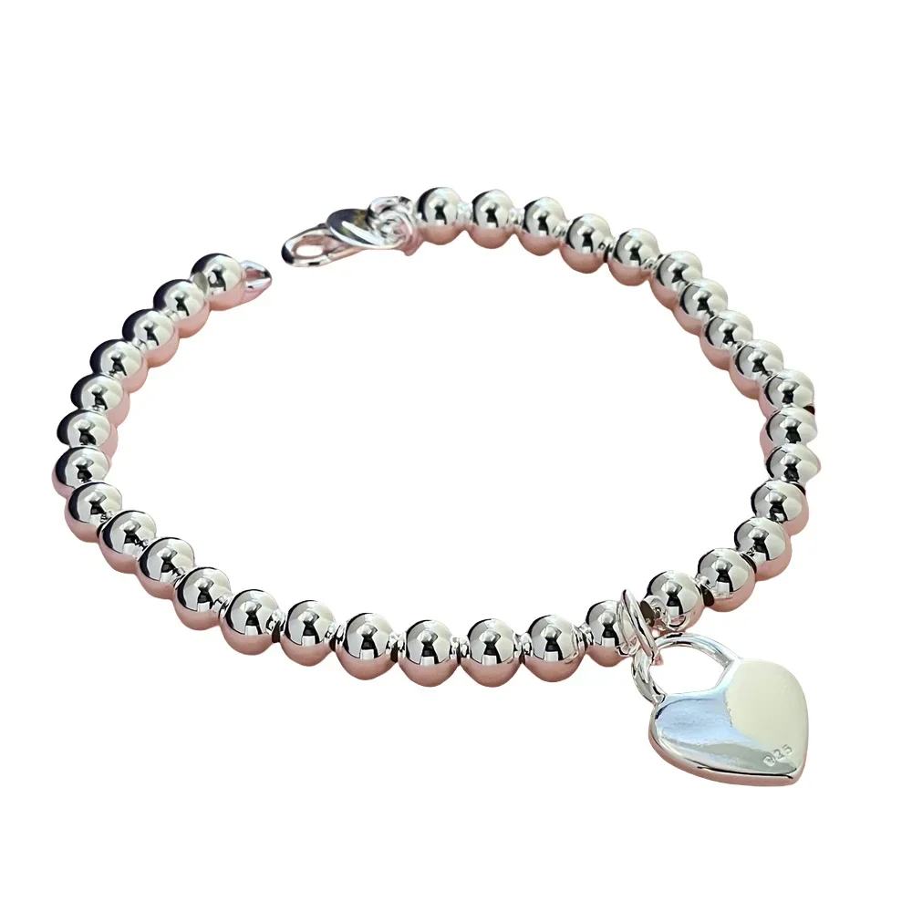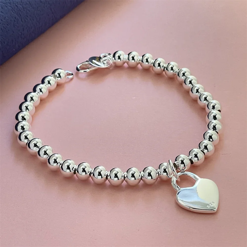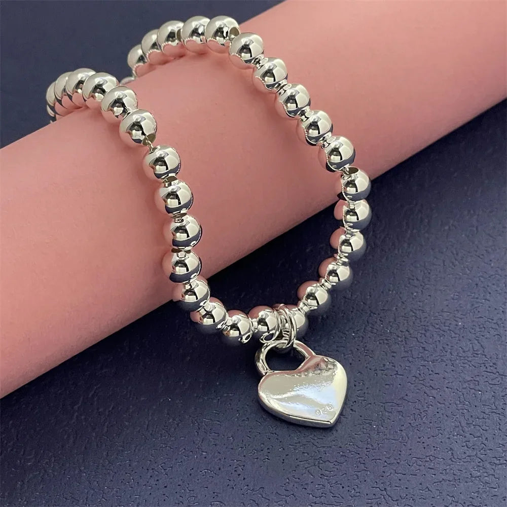 925 Sterling Silver Bracelet Buddha Beads Heart Card Charm Fashion Women Wedding Party Gift Jewelry