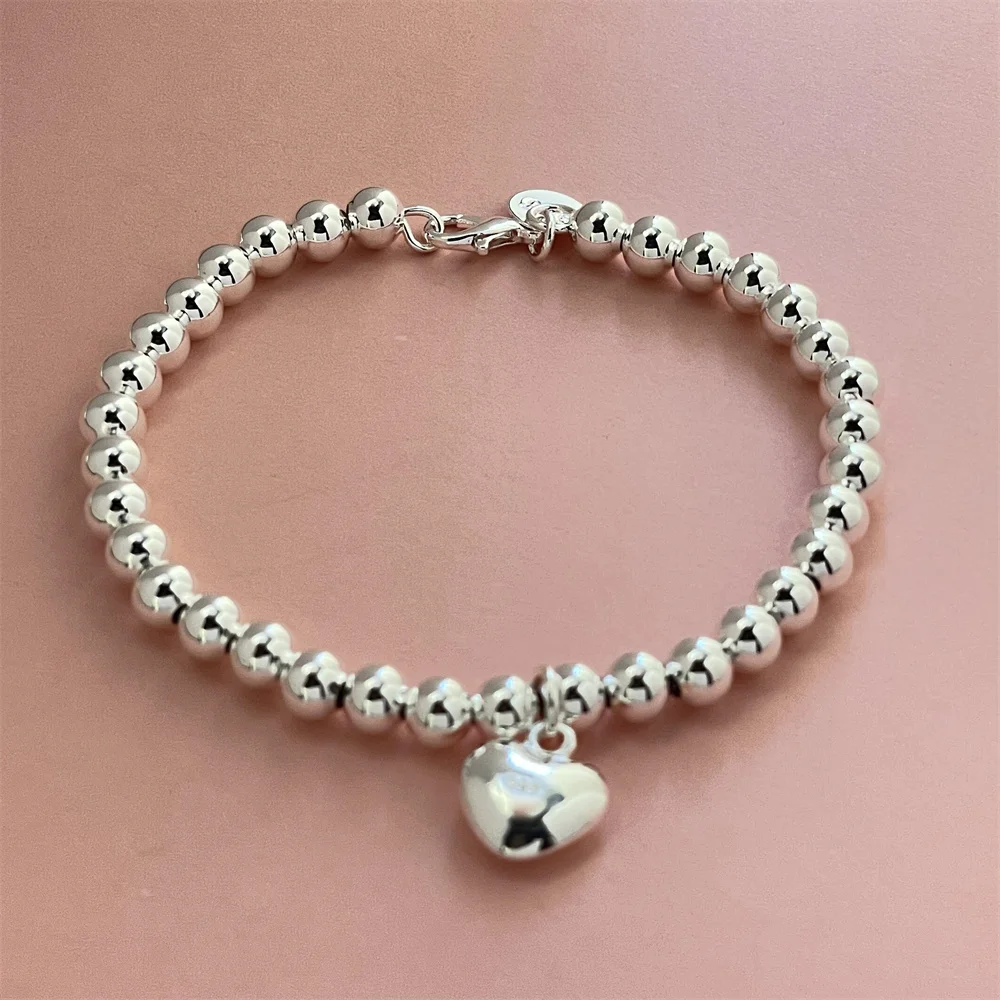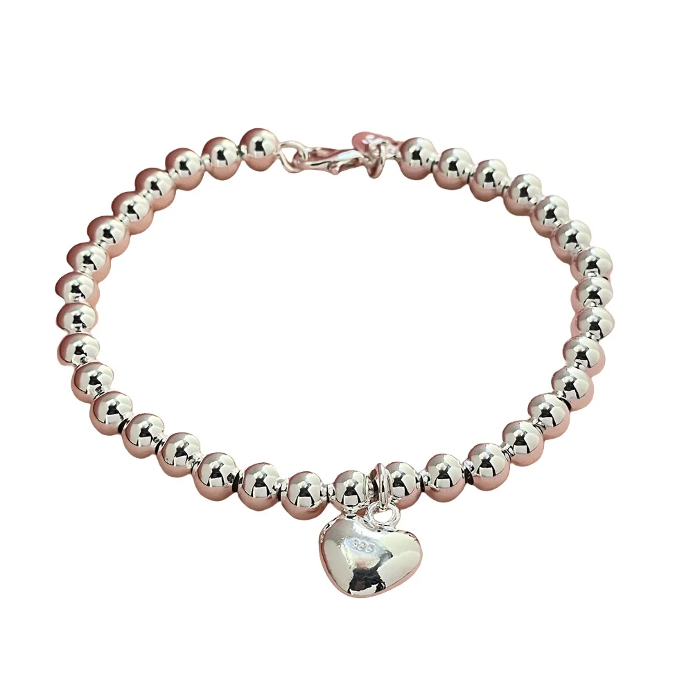 925 Sterling Silver Bracelet Exquisite Heart Shaped Buddha Beads Women Fashion Wedding Party Gift Jewelry