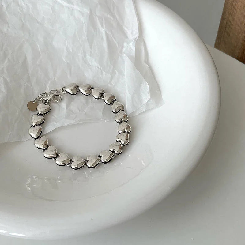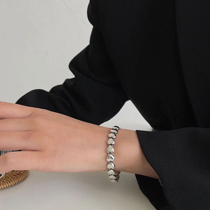 925 Sterling Silver Bracelets for Women Men String Accessories Trend Vintage Simple Heart Beads Pendant Party Jewelry Gift