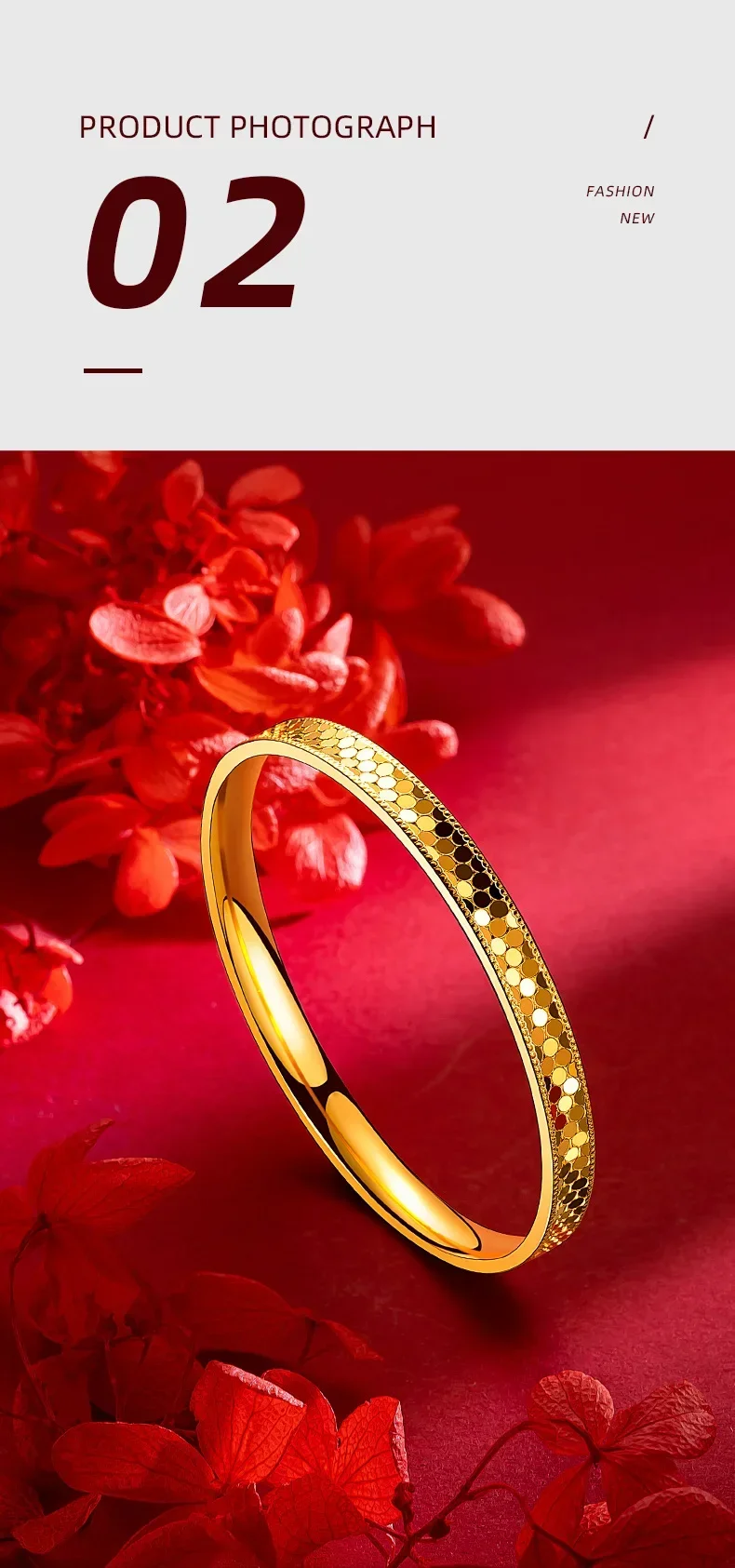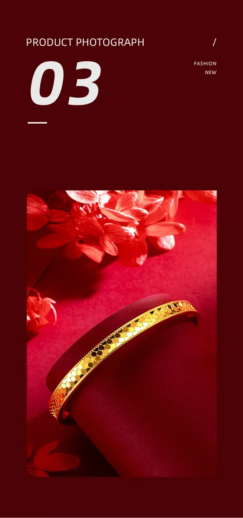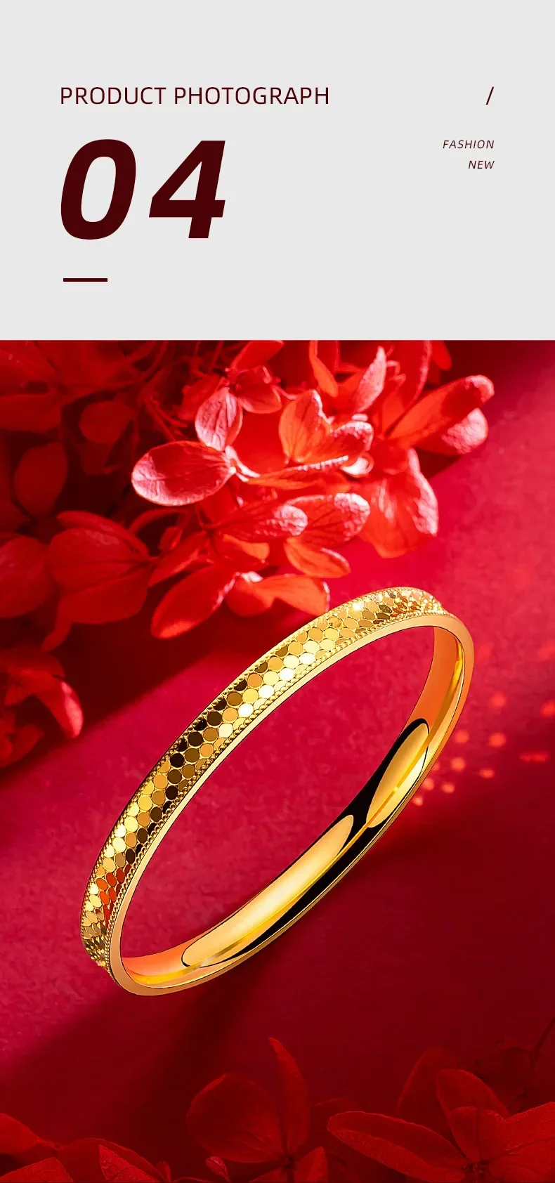 9999 Real Gold 24K Yellow Gold Dragon Scale Bracelet Honeycomb High Sense Bangle for Women Wedding Fine Jewelry