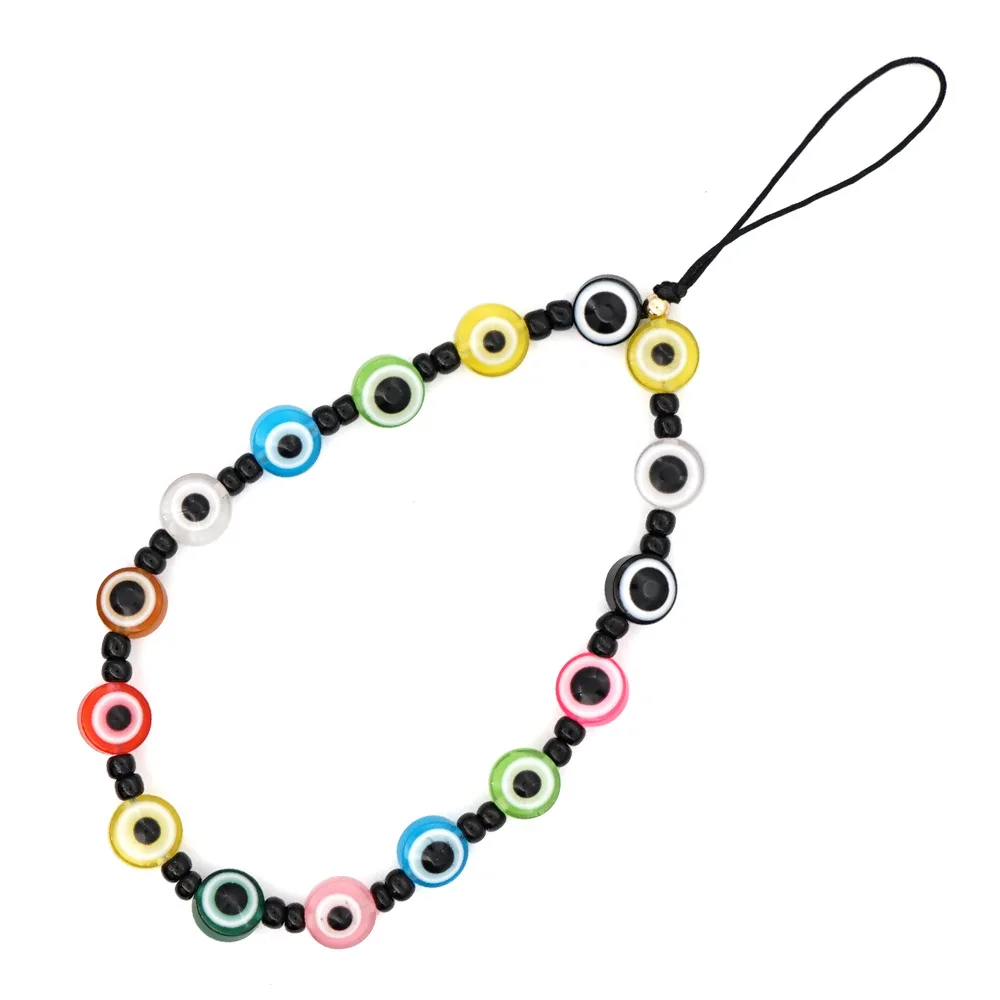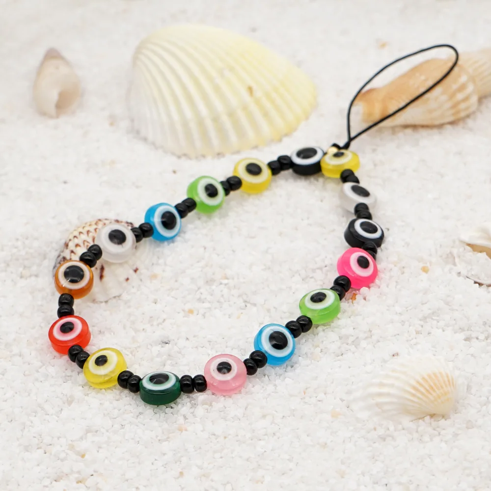 Acrylic Colorful Eyes Beads Phone Chain Strap Handmade Bracelet Telephone Portable Lanyard for Keys Lady Gift Bohemian Jewelry