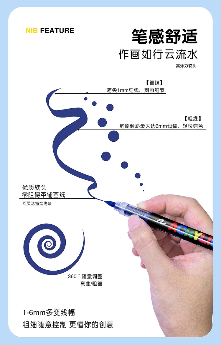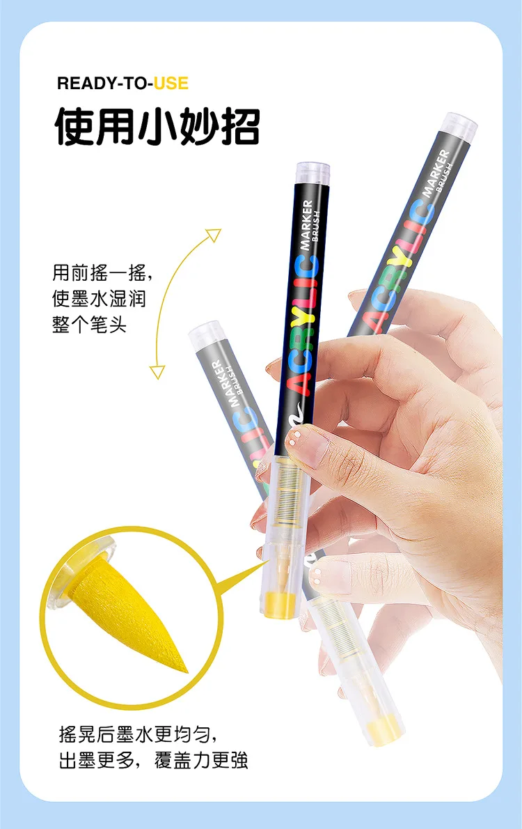 Acrylic Paint Pens, Soft Brush Tip Acrylic Paint Markers, 12 Color Acrylic Markers Ideal for Canvas, Rock Painting, Wood, Stone