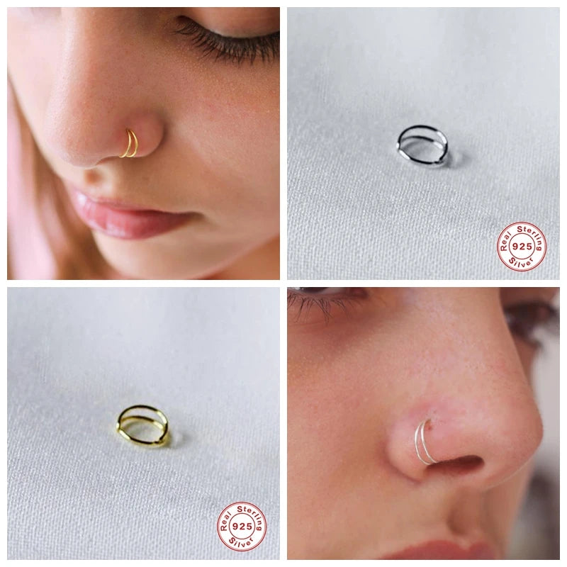 925 Sterling Silver Double Circle Nose Rings For Women Girls Small Open Hoop Ring Type Piercing Cartilage Stud Body Jewelry