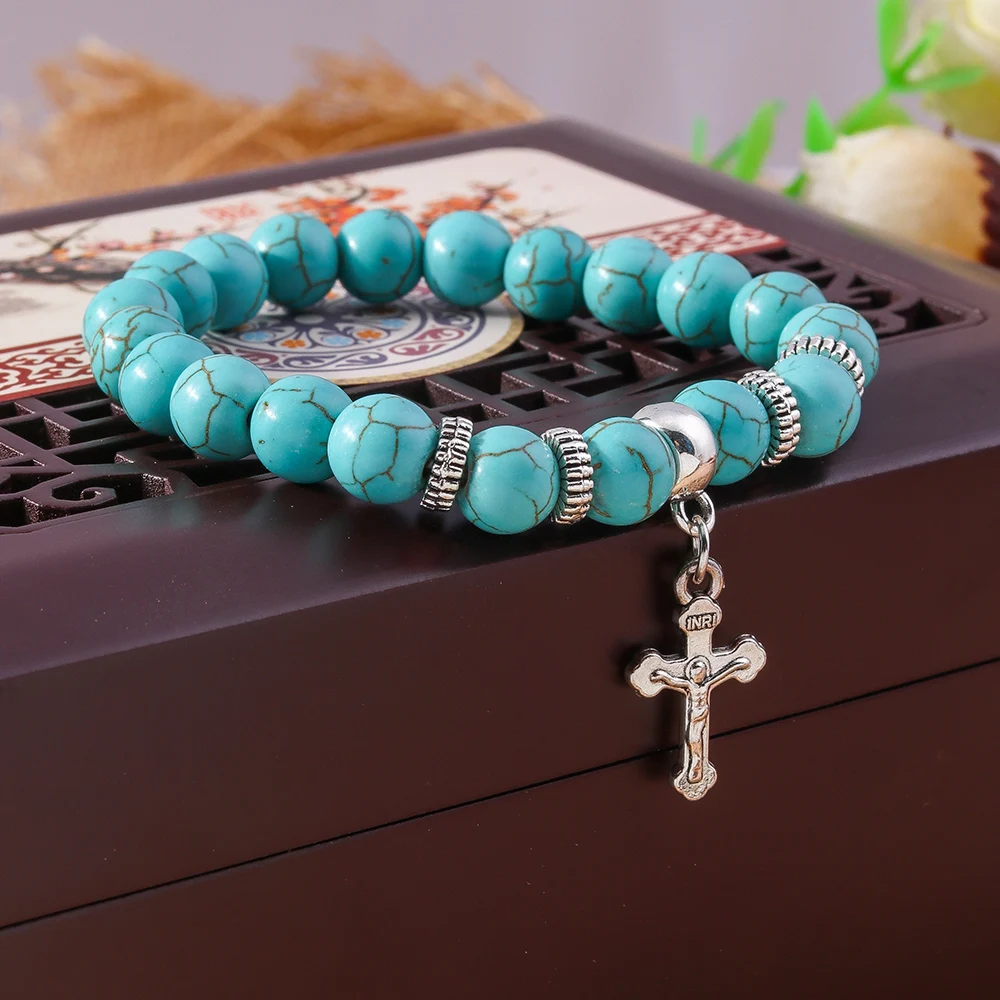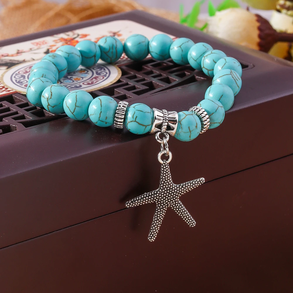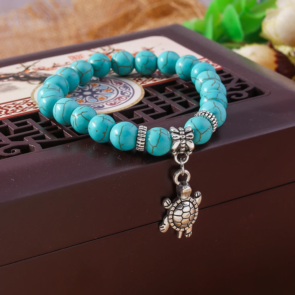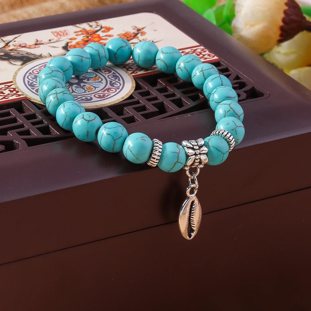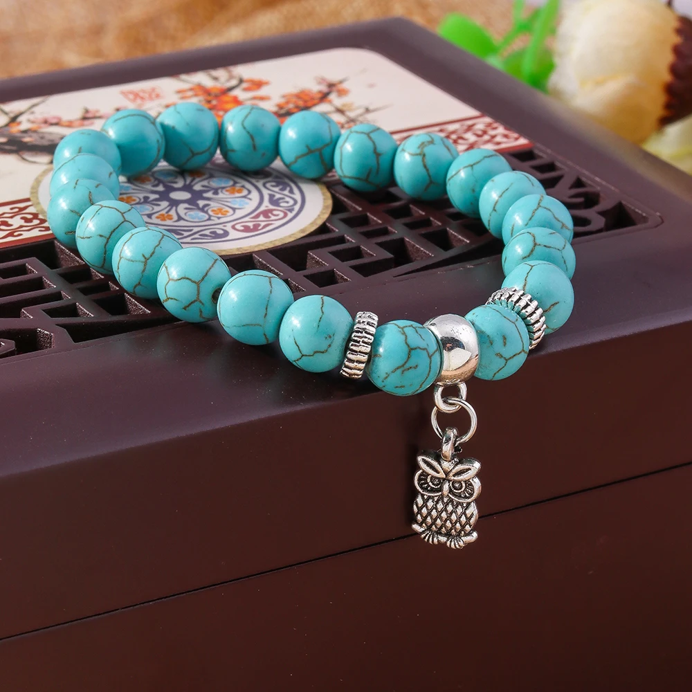 Aihua New Turquoise Stone Beads Bracelets for Women Men Natural Stone Charm Bracelet Bangles Wristband Fashion Jewelry Wholesale