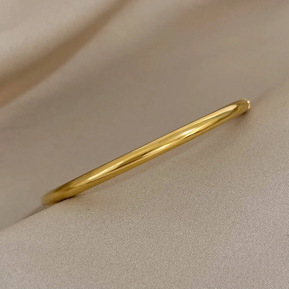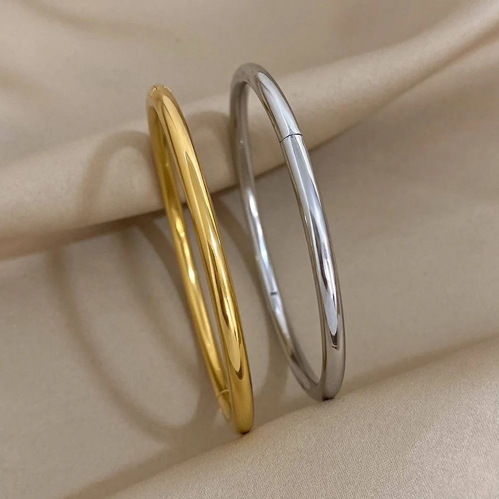 ALLYES Simple Gold Silver Color Stainless Steel Plain Cuff Bangle Bracelet for Women Minimalist Smooth Waterproof Jewelry Gifts