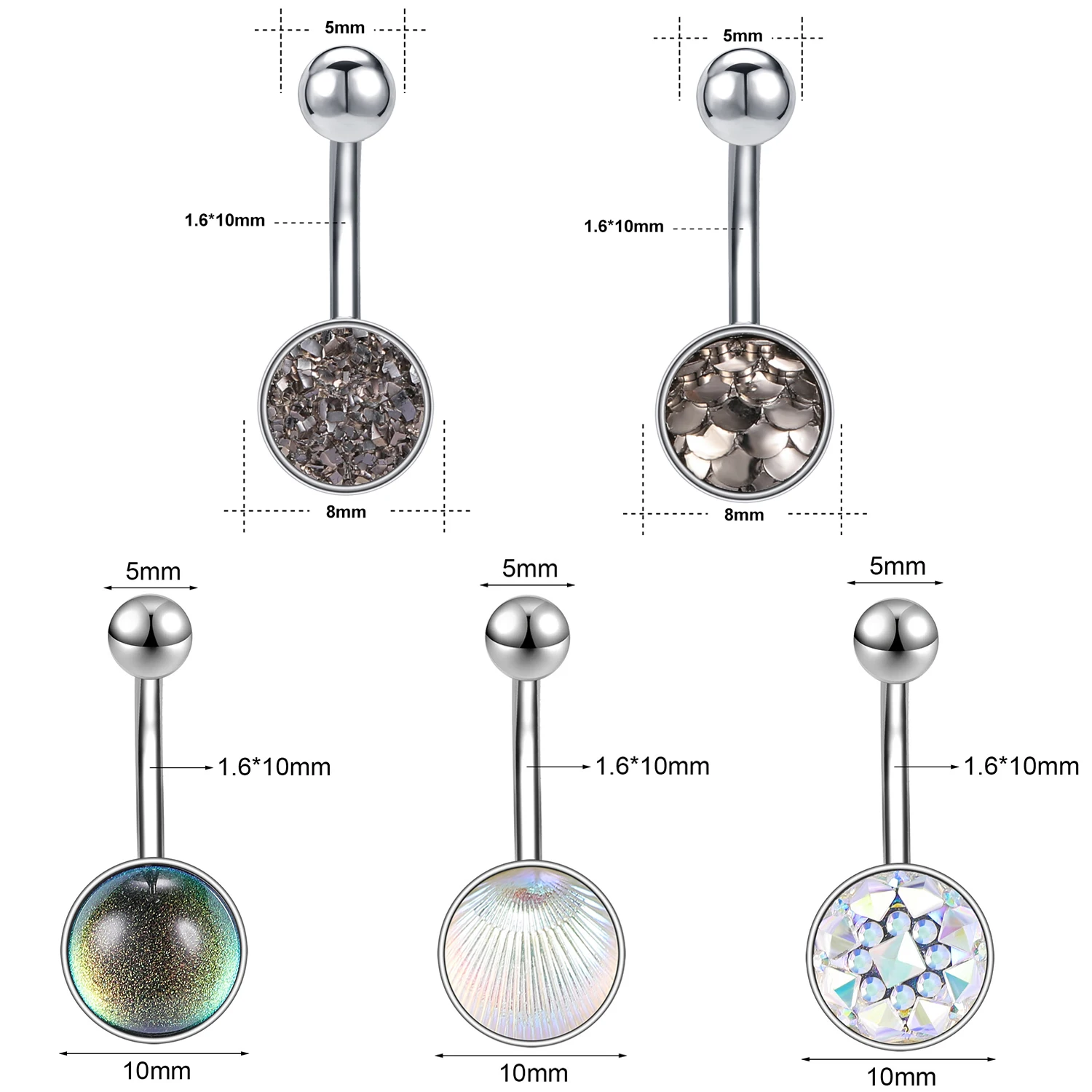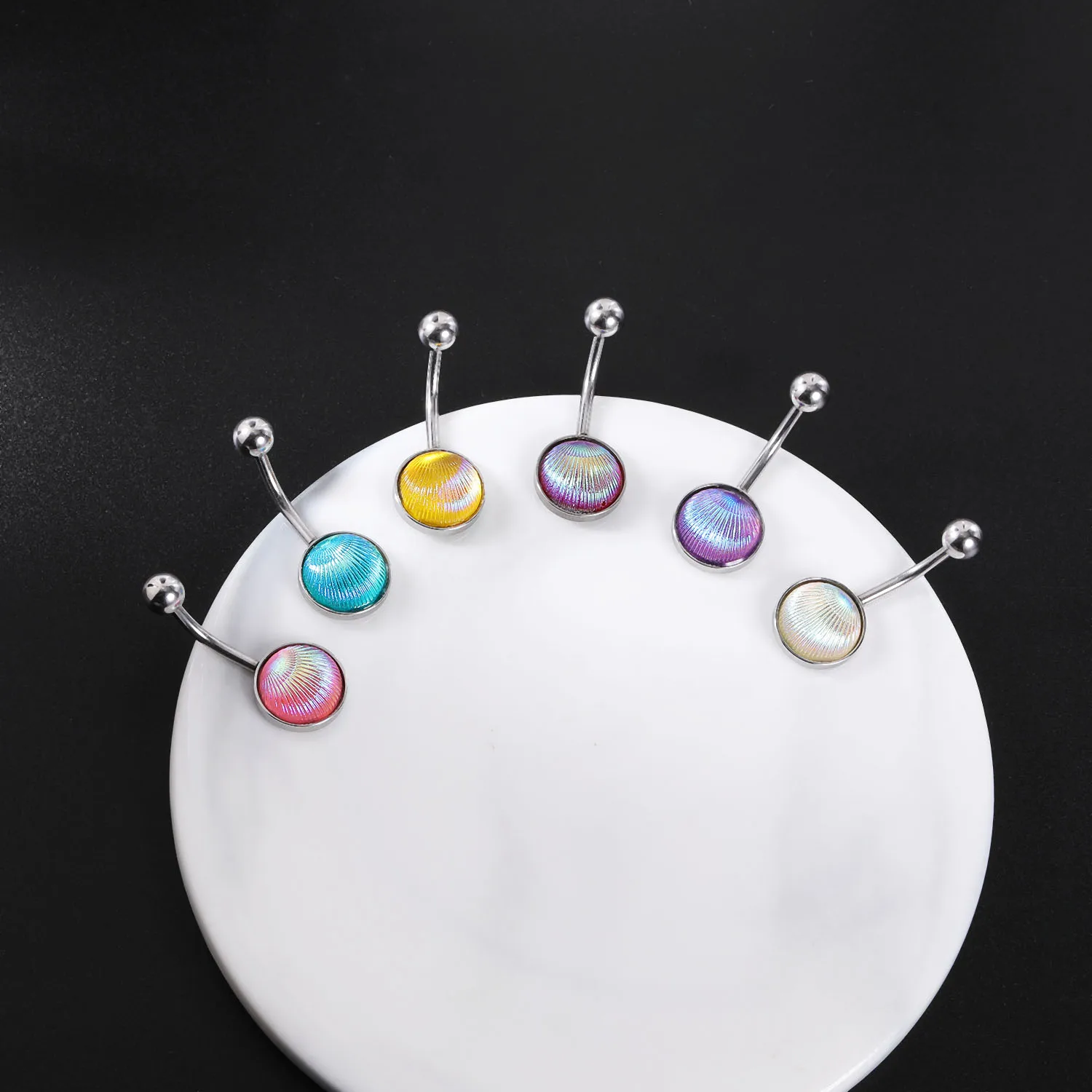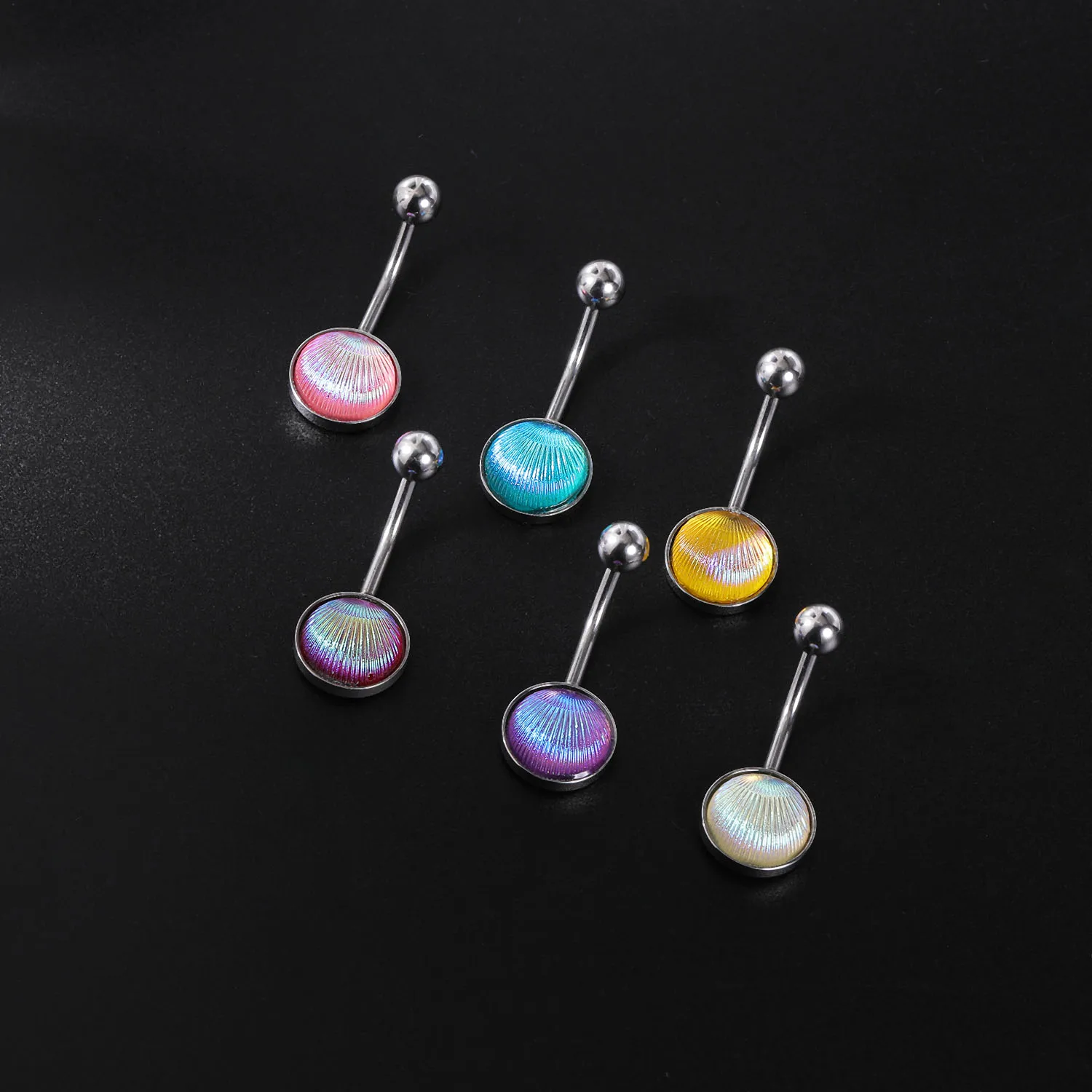AOEDJ 18G Fish Scales Belly Piercings Shell Pattern Navel Piercing Ring Colorful Belly Button Ring Women Body Piercing Jewelry