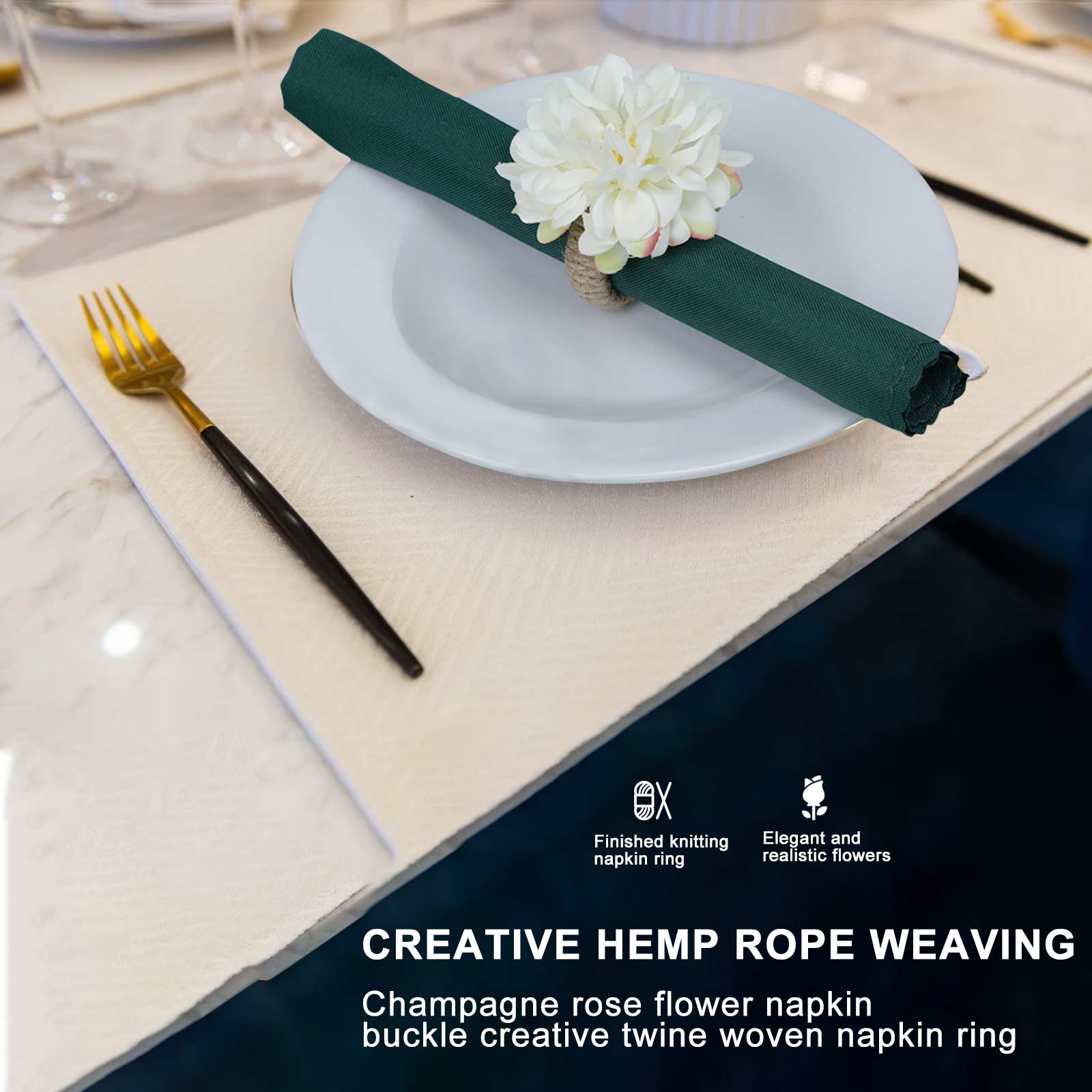 1. Handicraft Flower Napkin Ring: Our flower napkin rings are made of silk cloth, inject simple and elegant faux flower shape, which is a kind of item of practical and artistic nature.