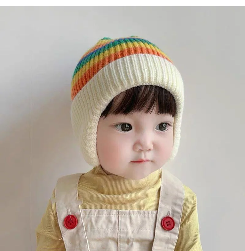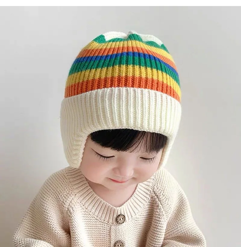Autumn Winter Baby Hat Fashion Striped Knitted Hats for Boys Girls Toddler Infant Pullover Cap Ear Protection Kids Accessories