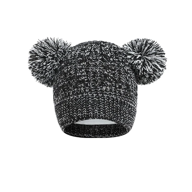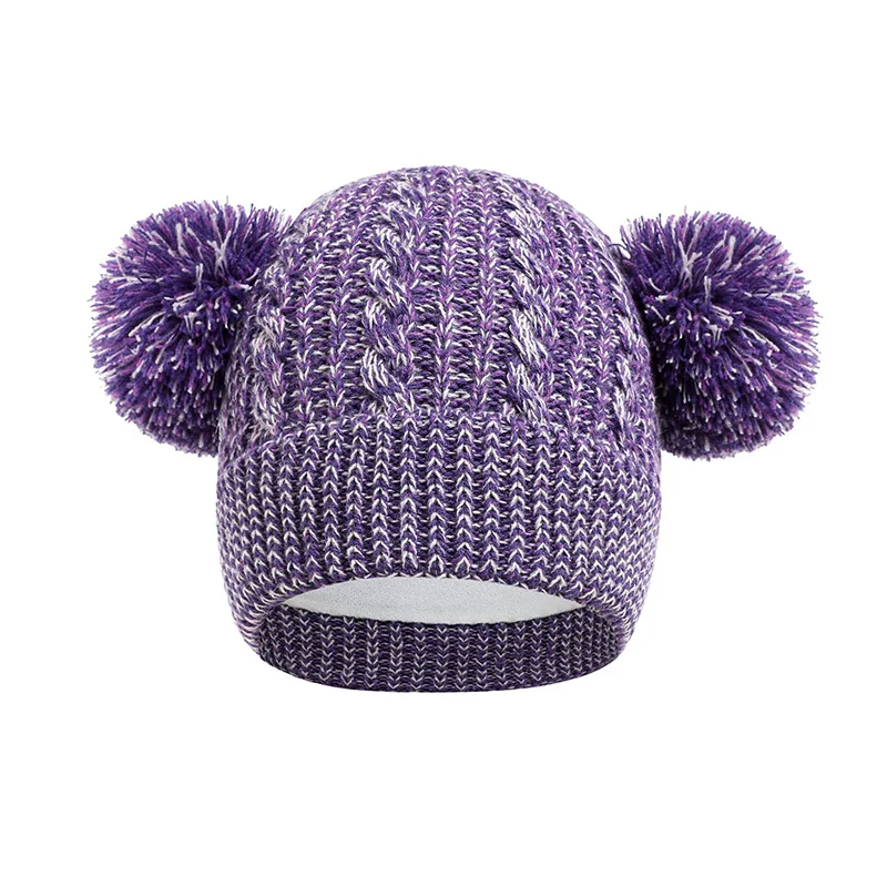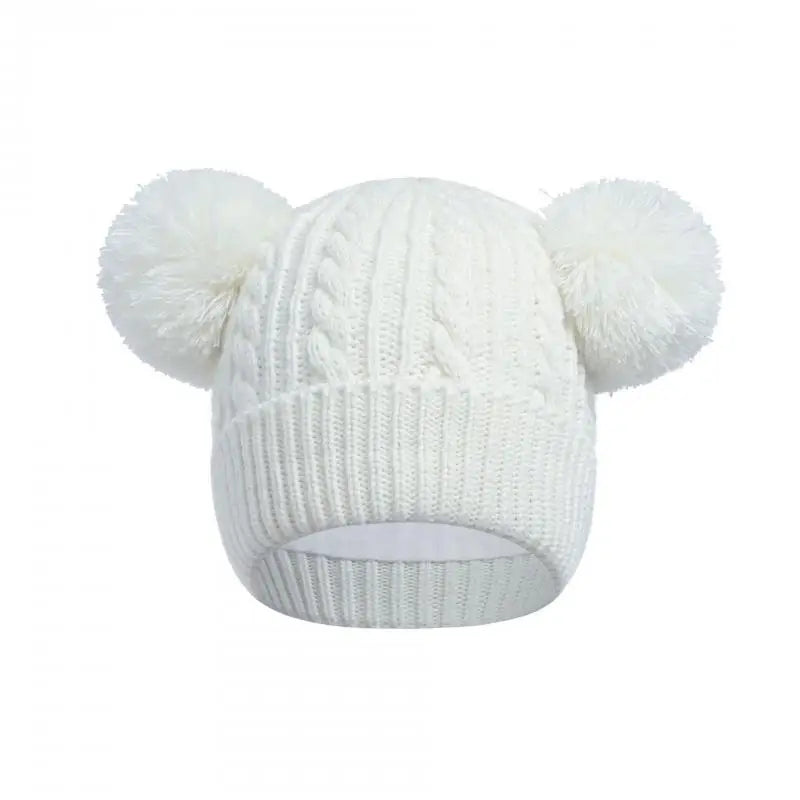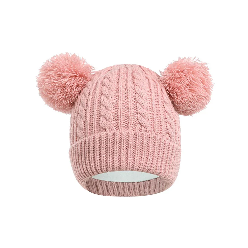 Autumn Winter Knitted Hat for Baby Boys Double Pompom Plus Velvet Beanie Girls Keep Warm Hats Kids Accessories 4-6 Years Old