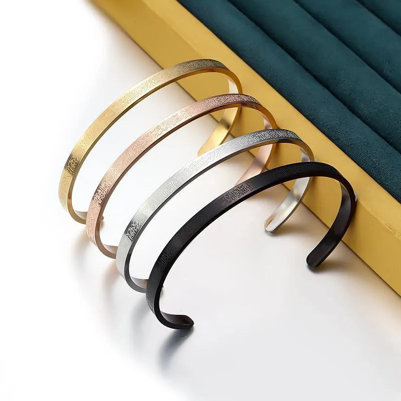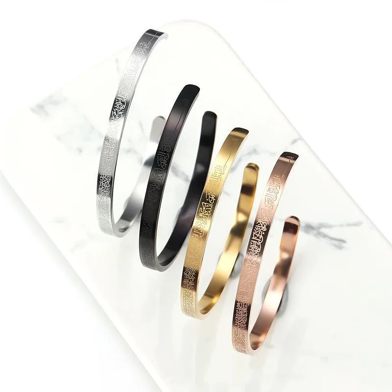 Ayatul Kursi Stainless Steel Bracelet Men Women Islamic Muslim Religious Jewelry Arabic Calligraphy Cuff Bracelet Ramadan Gift