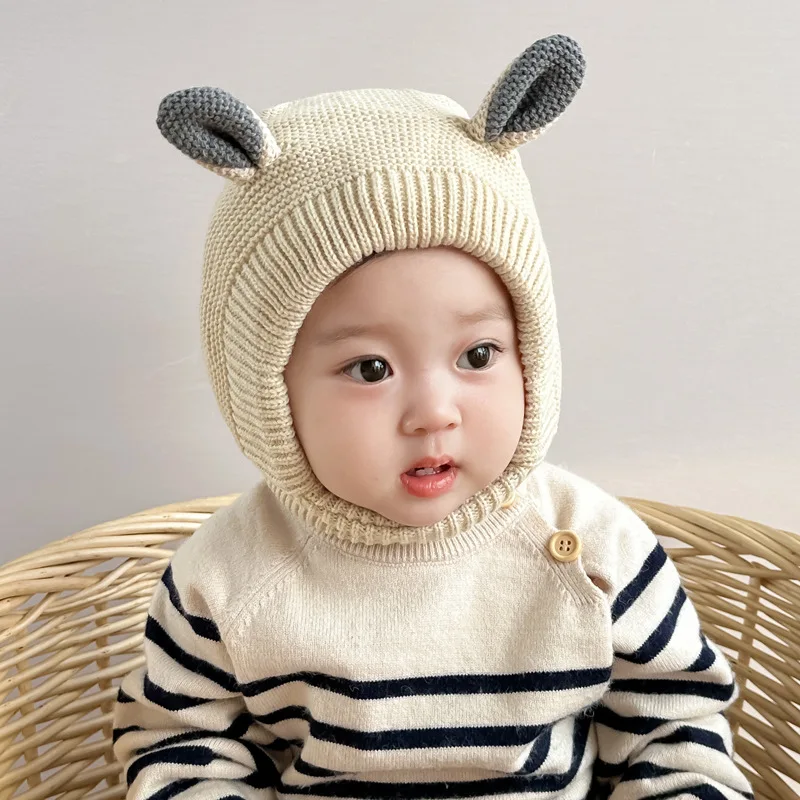 Baby Hat with Cute Earflap Warm Fleece Lining 6-12 Months Winter Knit Beanie Caps for Boy Girl