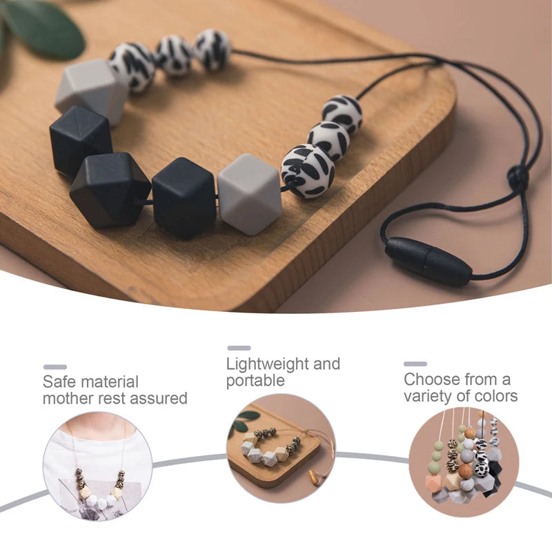 Baby Teething Silicone Beads Necklace Food Grade Long Chain Babies Items Care Gift for Reborn Teethers Goods 0 to 3 Months
