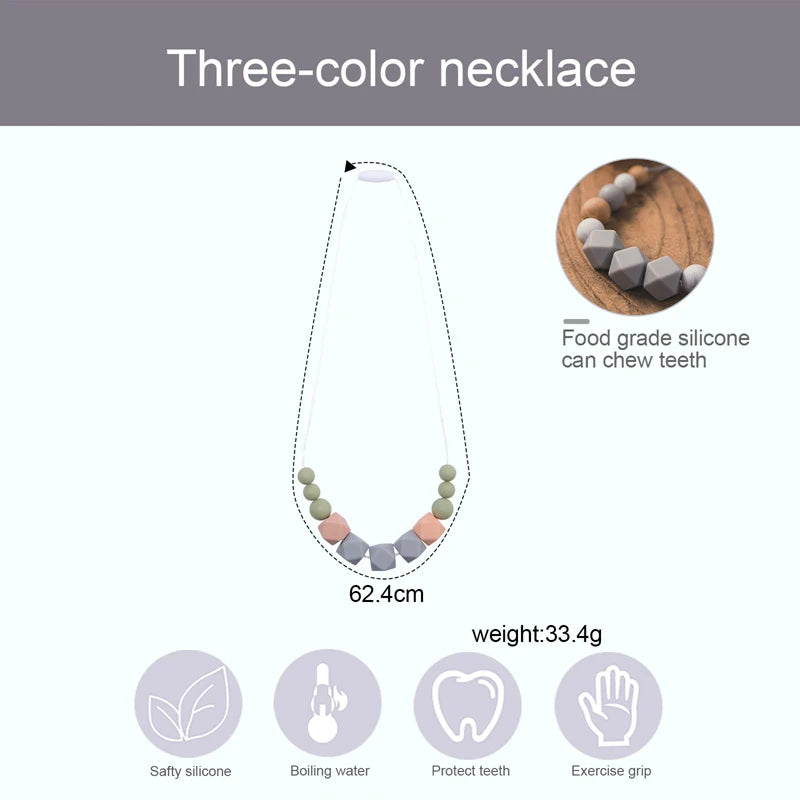 Hemasa Baby Teething Silicone Beads Necklace Food Grade Long Chain