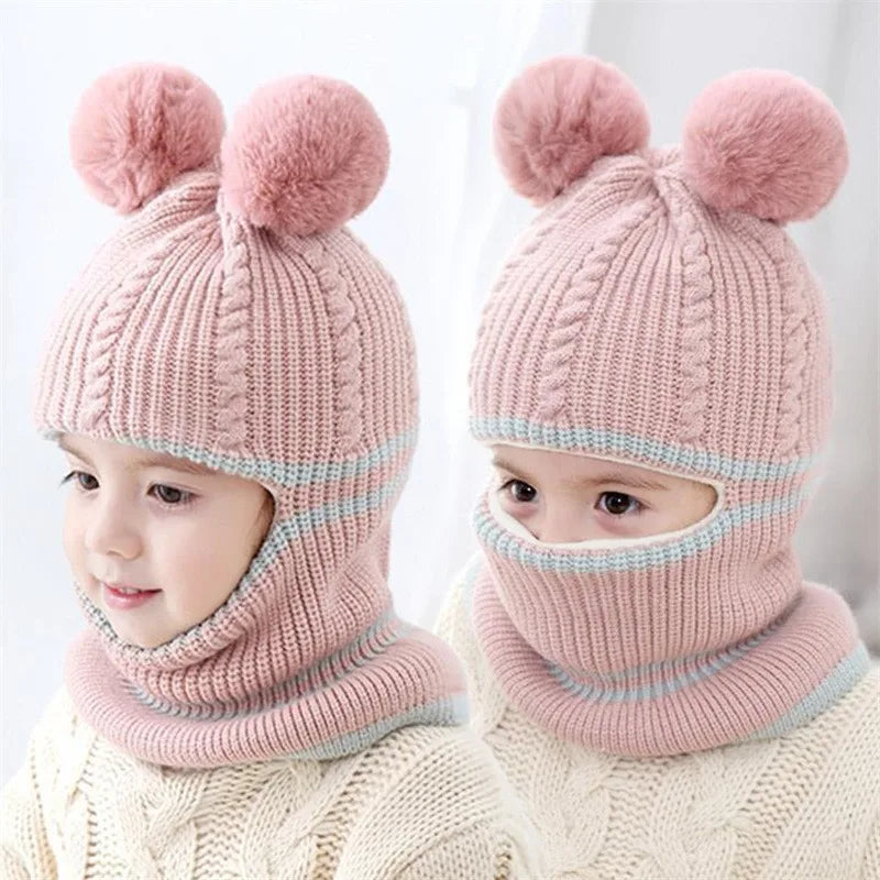 Baby Winter Hat Pompom Children Knitted Hats Baby Girls and Boys Hat with Warm Fleece Lining Hats for Kids