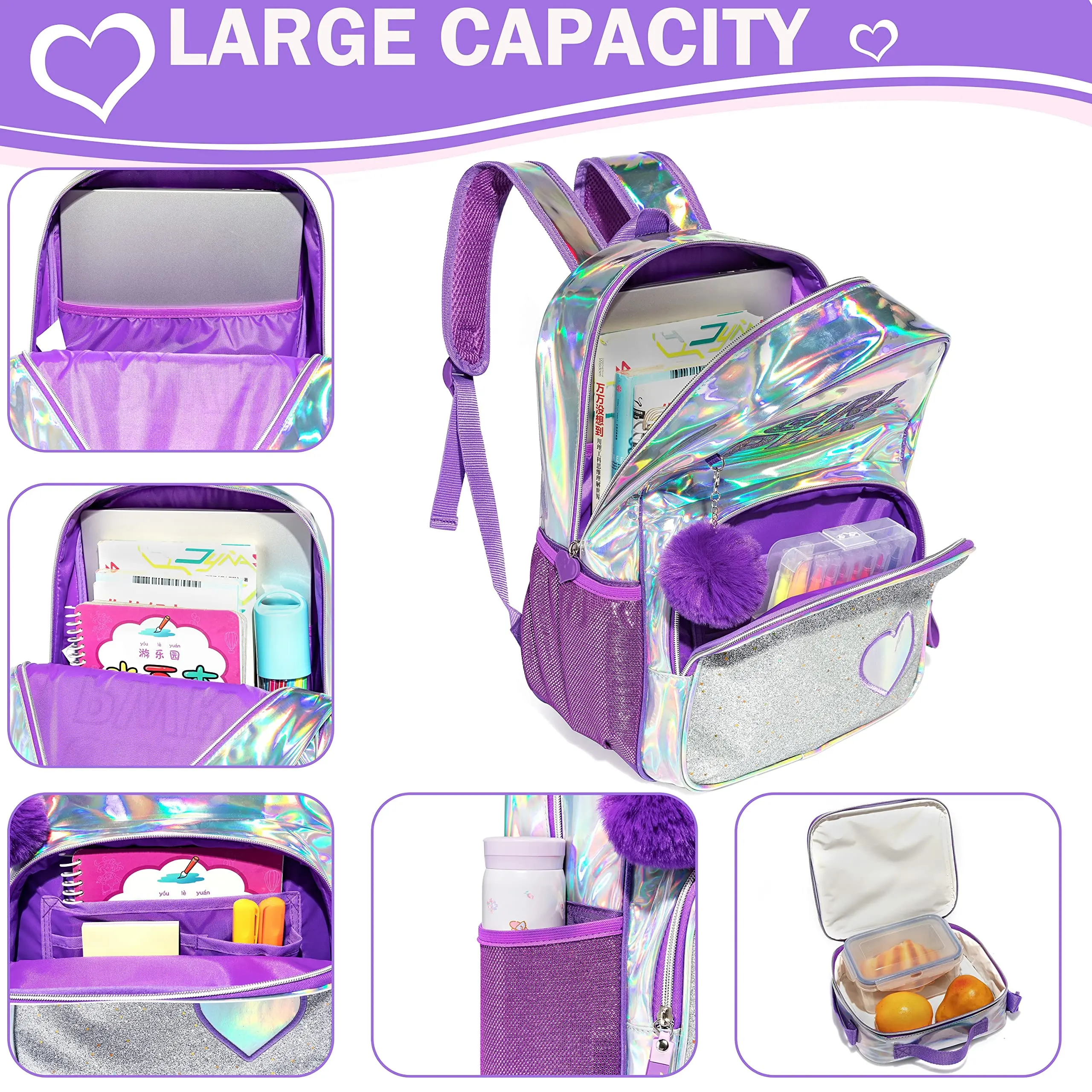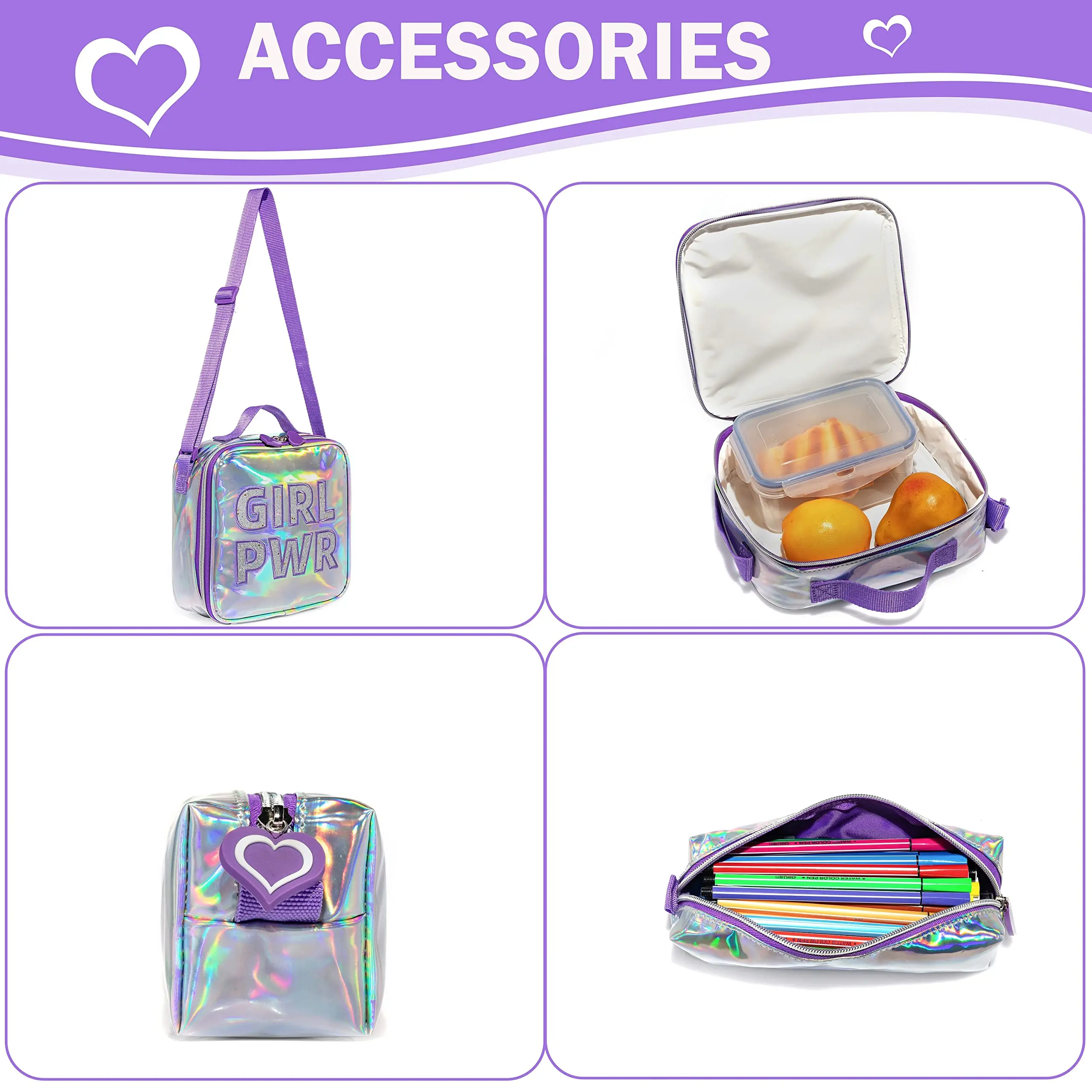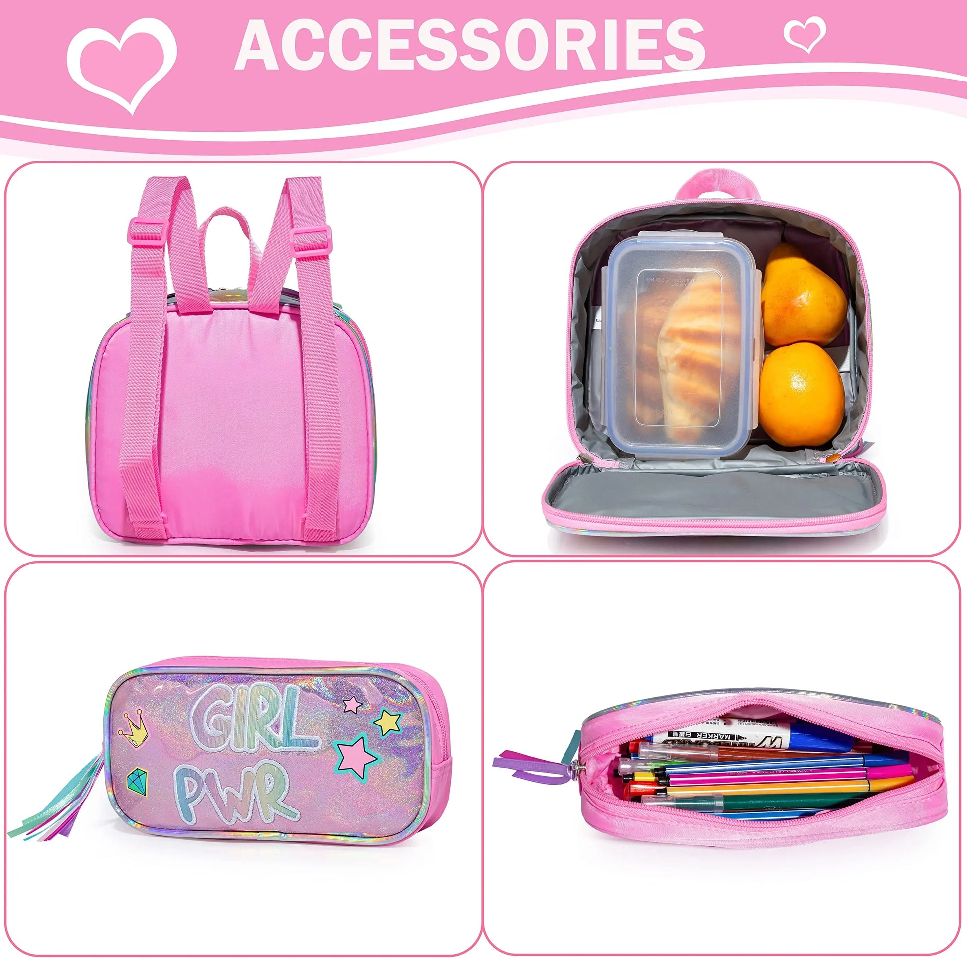Backpack for Girls School Backpacks Kids Clear Bookbag for Elementary Kindergarten Students Full Size Travel Bag with Lunch Box