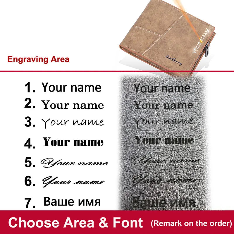Baellerry Luxury Men Wallets Name Engraved Short Male Purse Brand Card Holder High Quality PU Leather Small Men Wallets Carteria