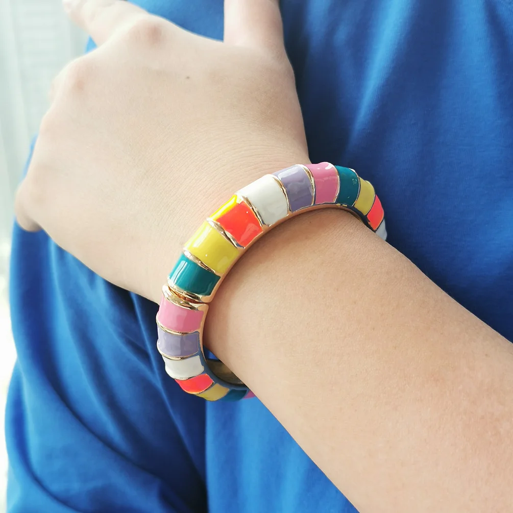 Bamboo Alloy Oil-spot Glaze Cuff Bracelets Multicolor Statement Chunky Bangle & Bracelet For Women Charm Jewelry Fashion Ethnic